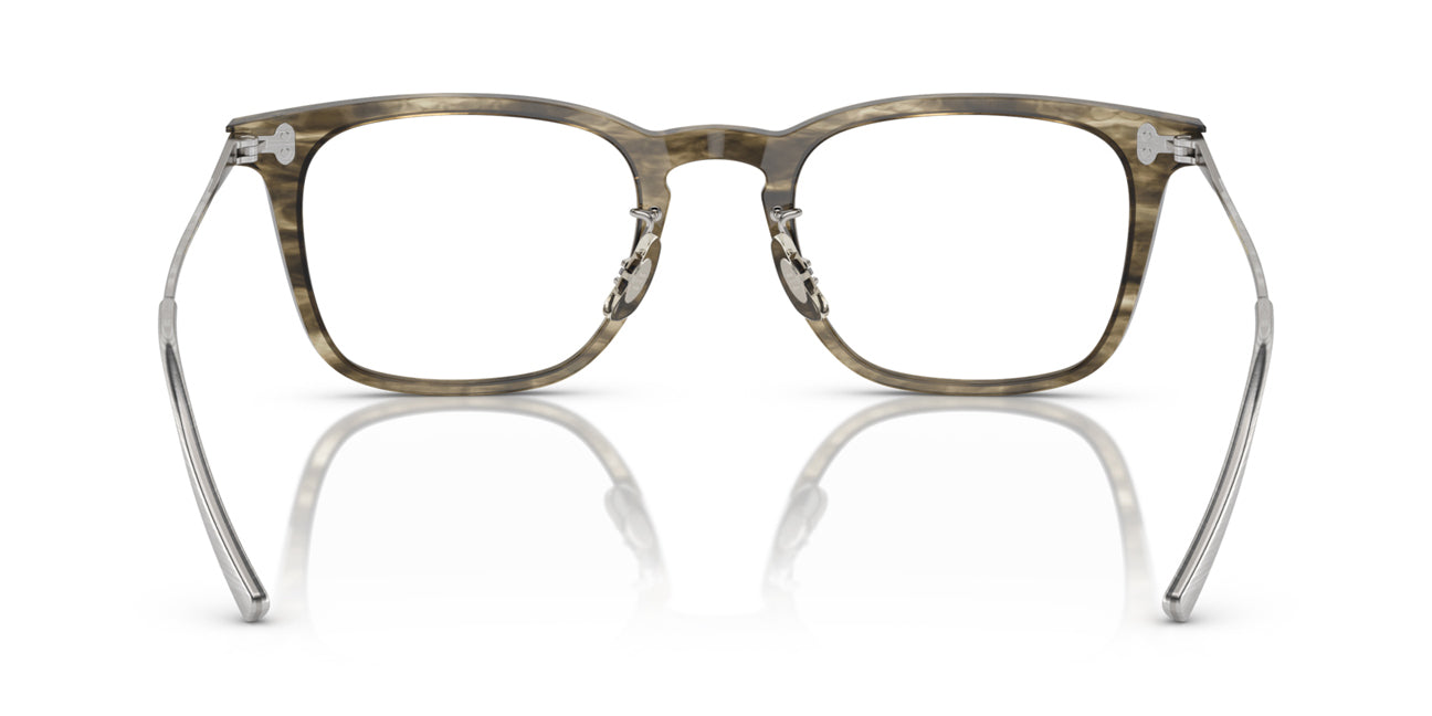 This square Oliver Peoples optical comes in a soft olive black frame.
