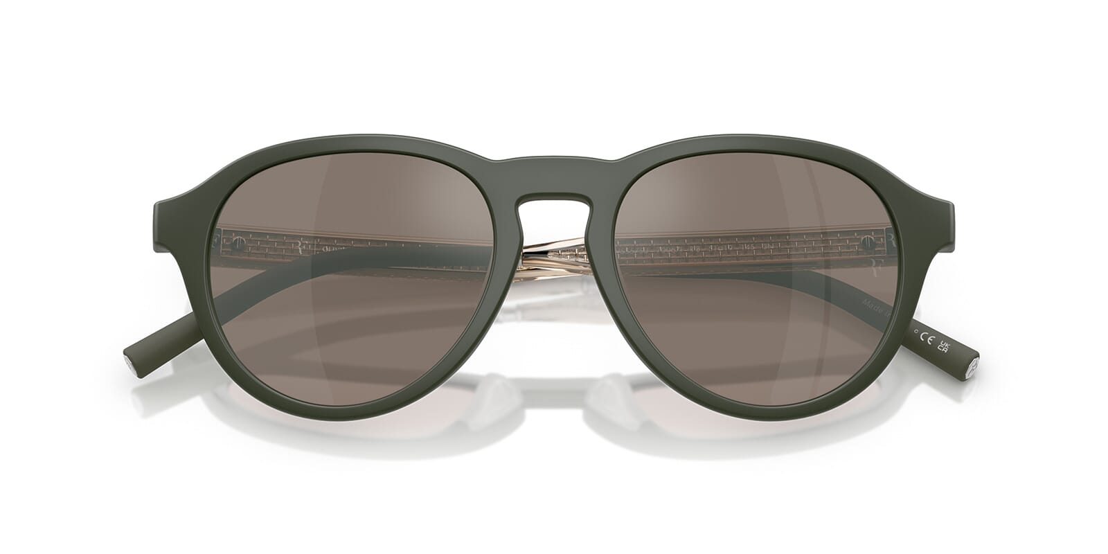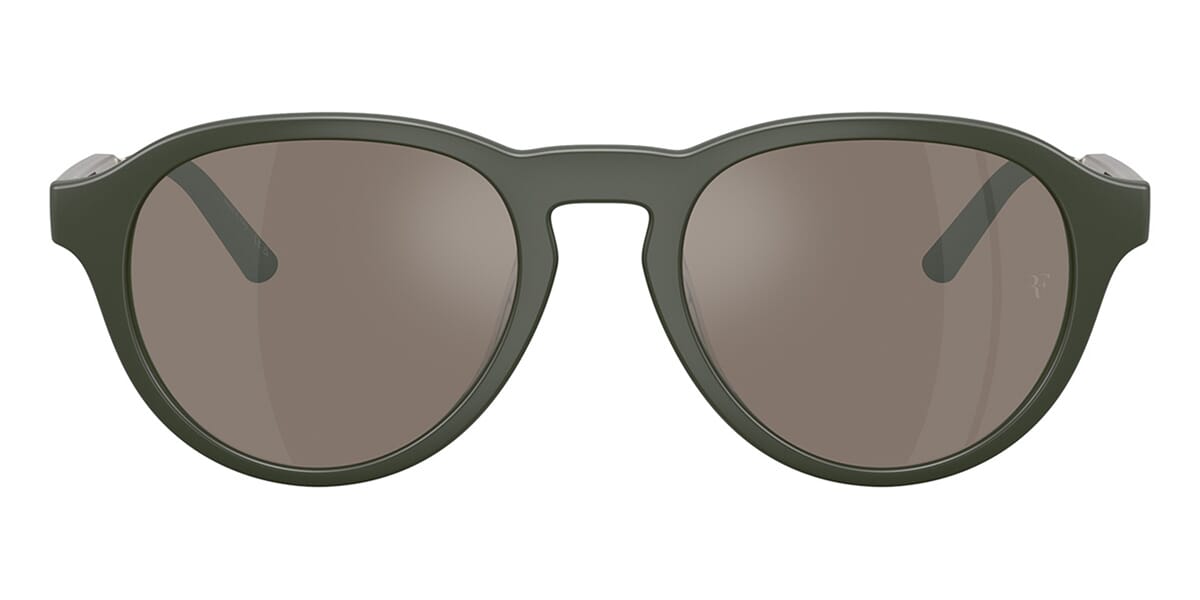 This round Oliver Peoples sunglass comes in a green smoke frame with sierra flash mirror lenses.