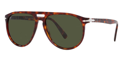 This aviator Persol sunglass comes in a black frame with green lenses.