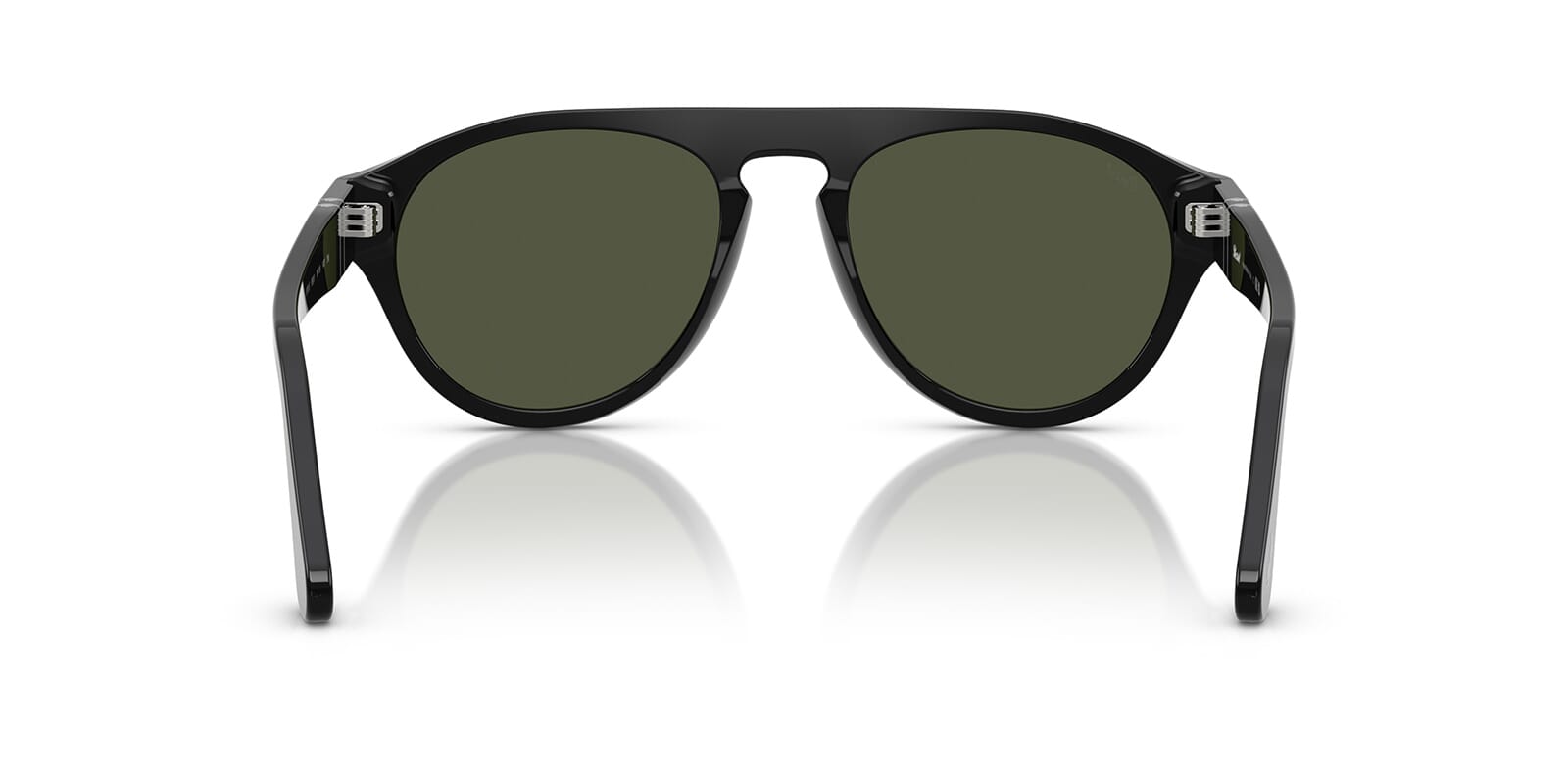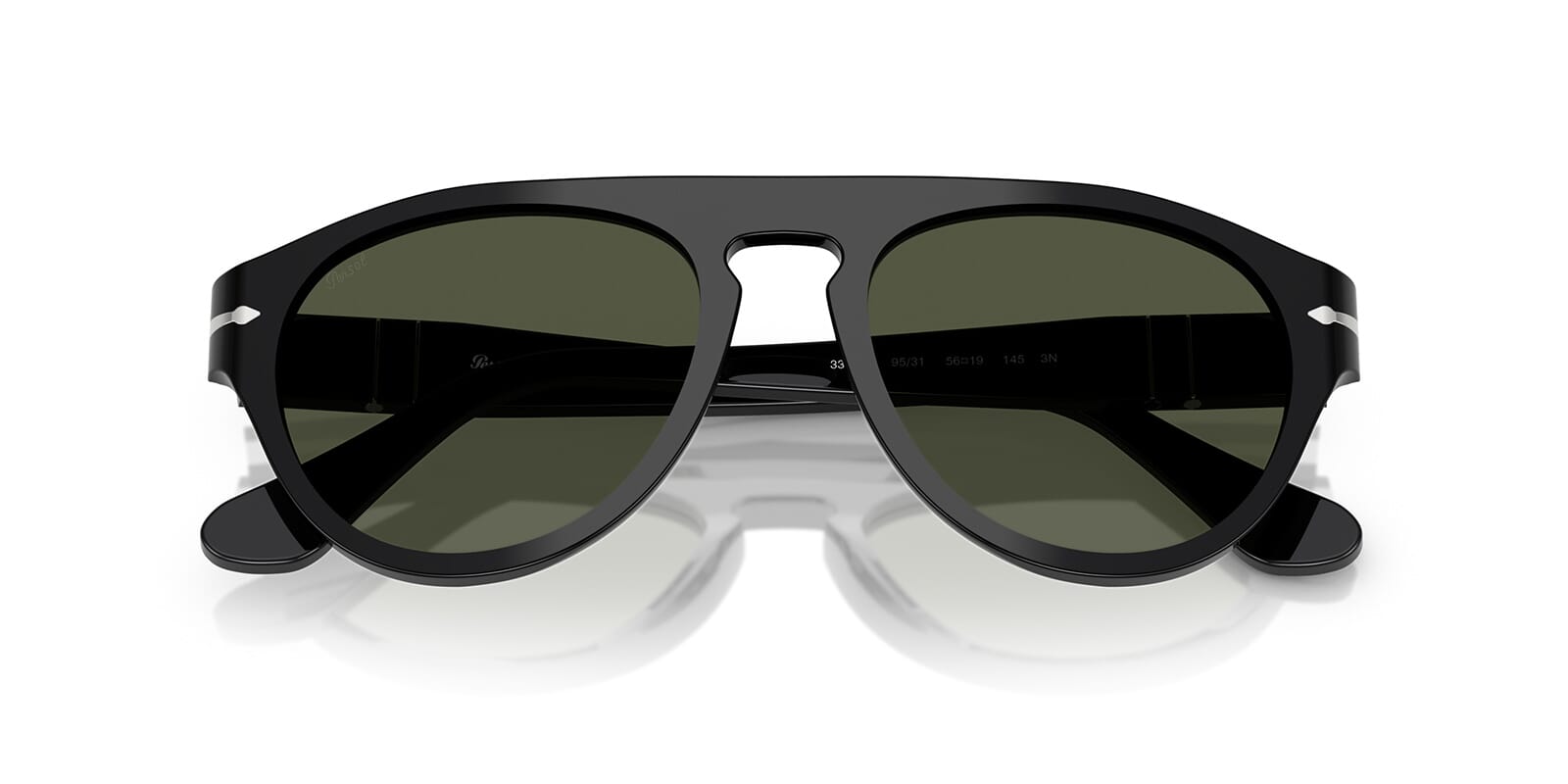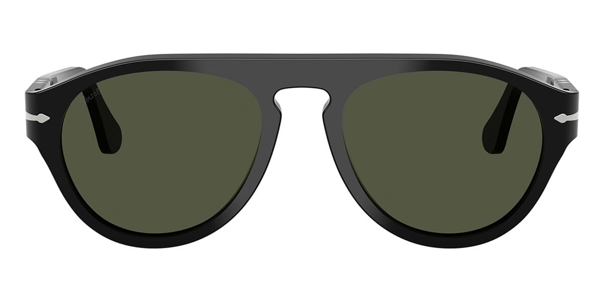 This aviator Persol sunglass comes in a black frame with green lenses.
