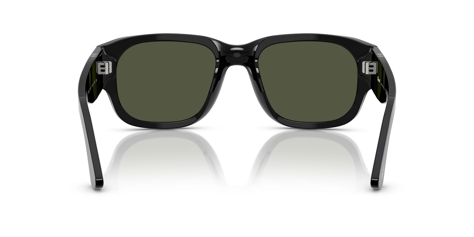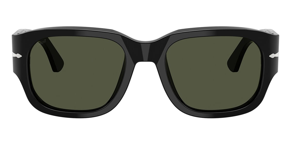 This square Persol sunglass comes in a black frame with green lenses.