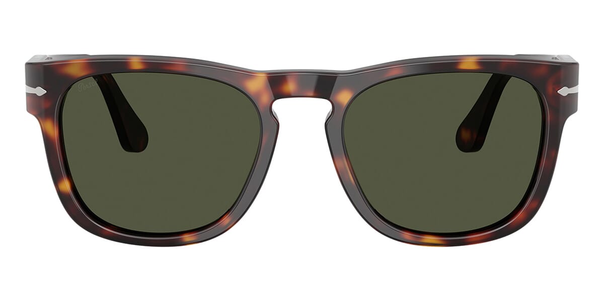This square Persol sunglass comes in a havana frame with green lenses.