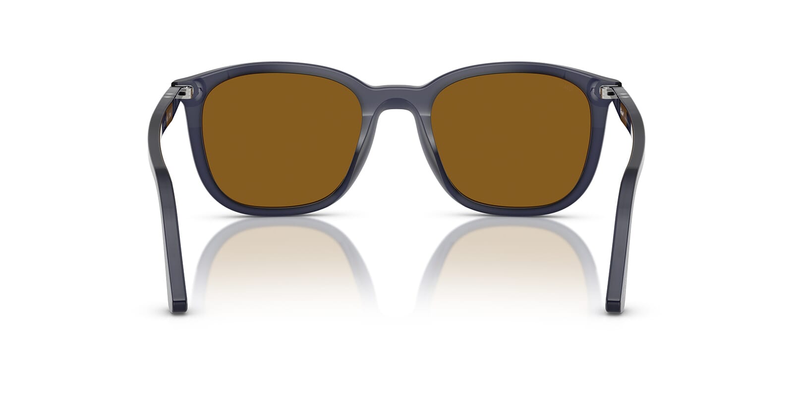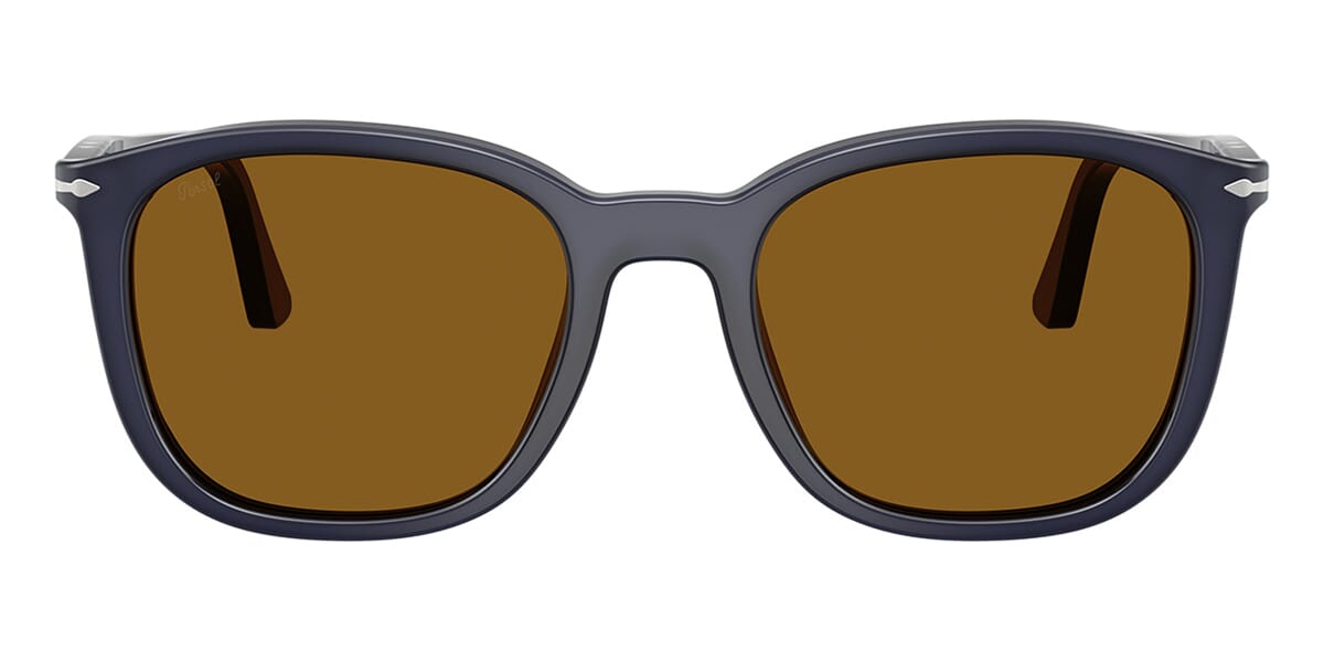 This square Persol sunglass comes in a milky depths blue frame with brown lenses.