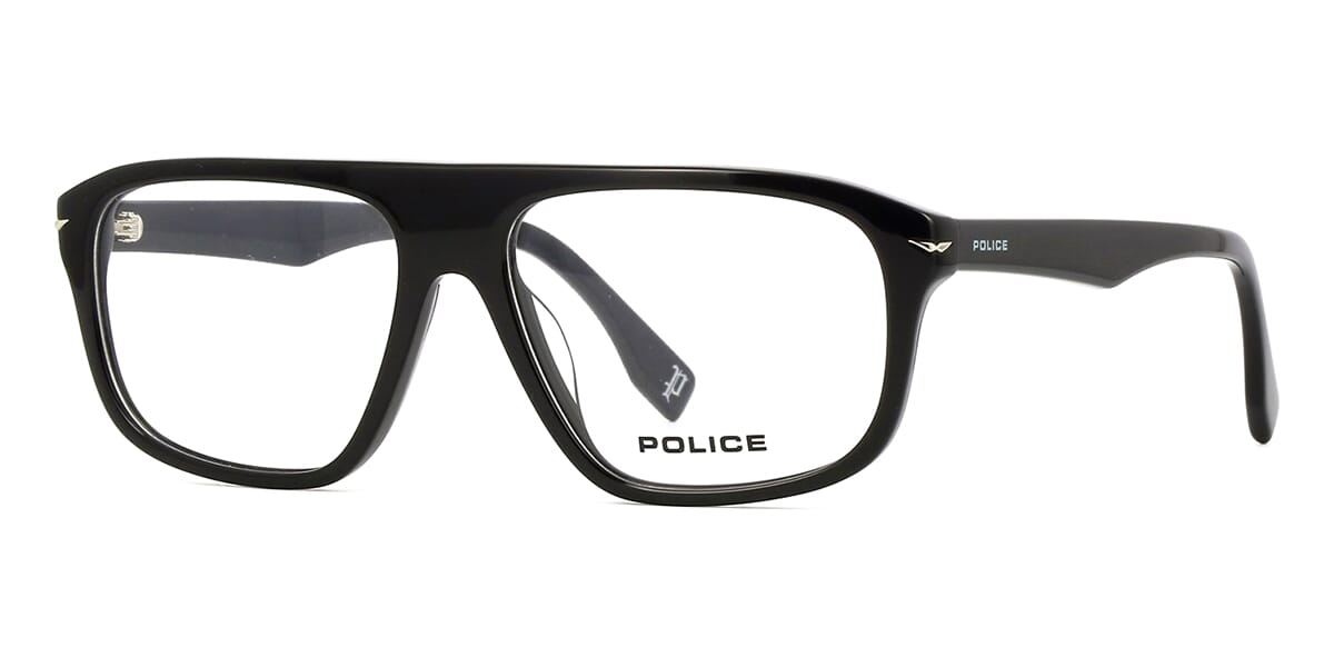 This square Police optical comes in a shiny black frame.