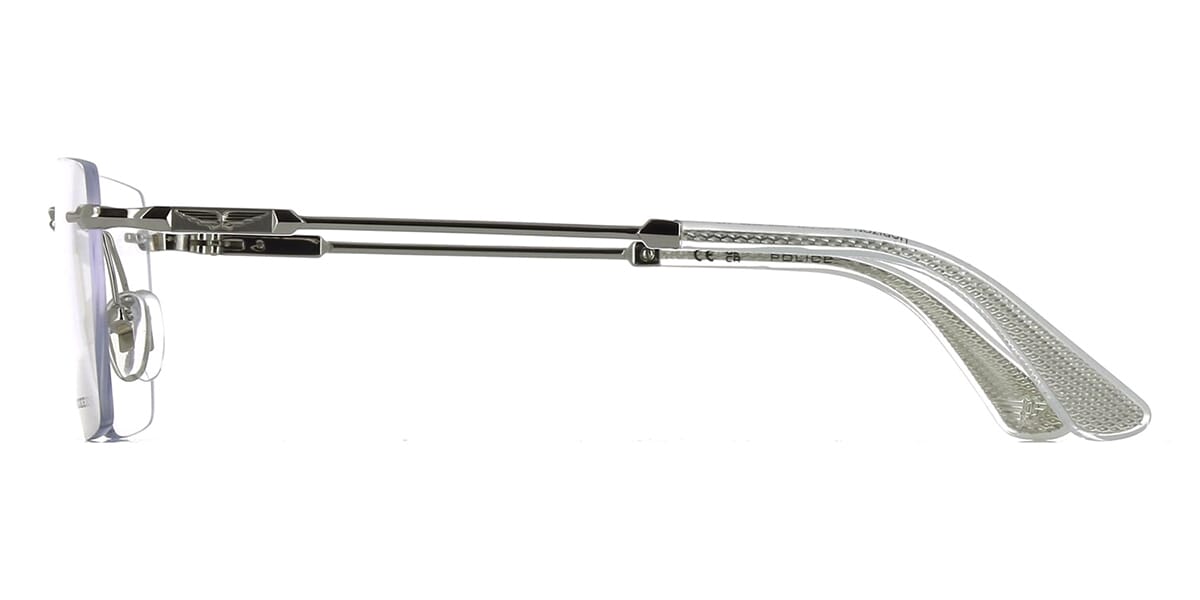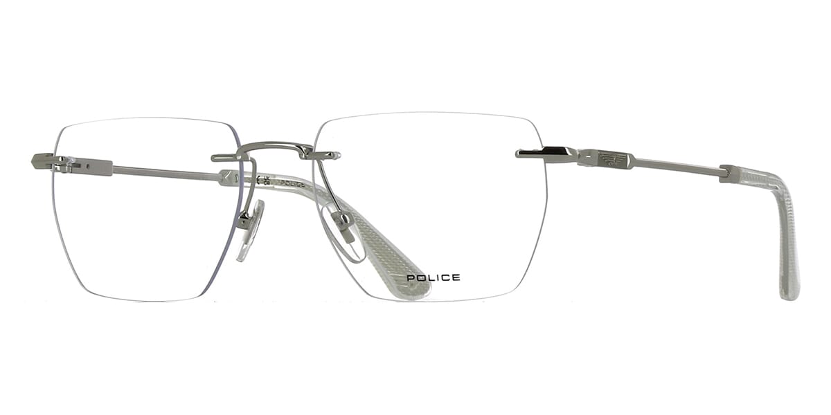 This square Police optical comes in a shiny silver frame.