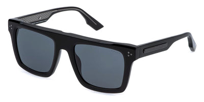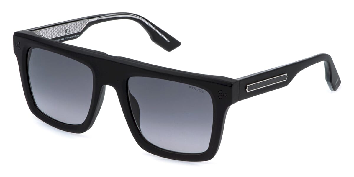This square Police sunglass comes in a matte black frame with grey gradient lenses.