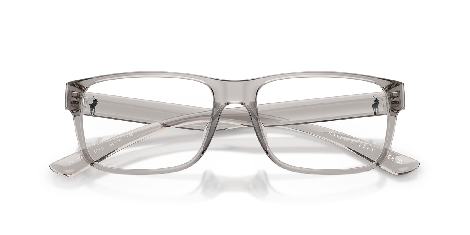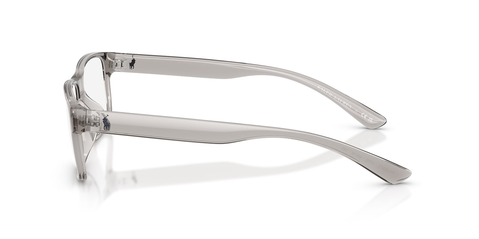 This rectangular Polo optical comes in a shiny grey crystal frame.