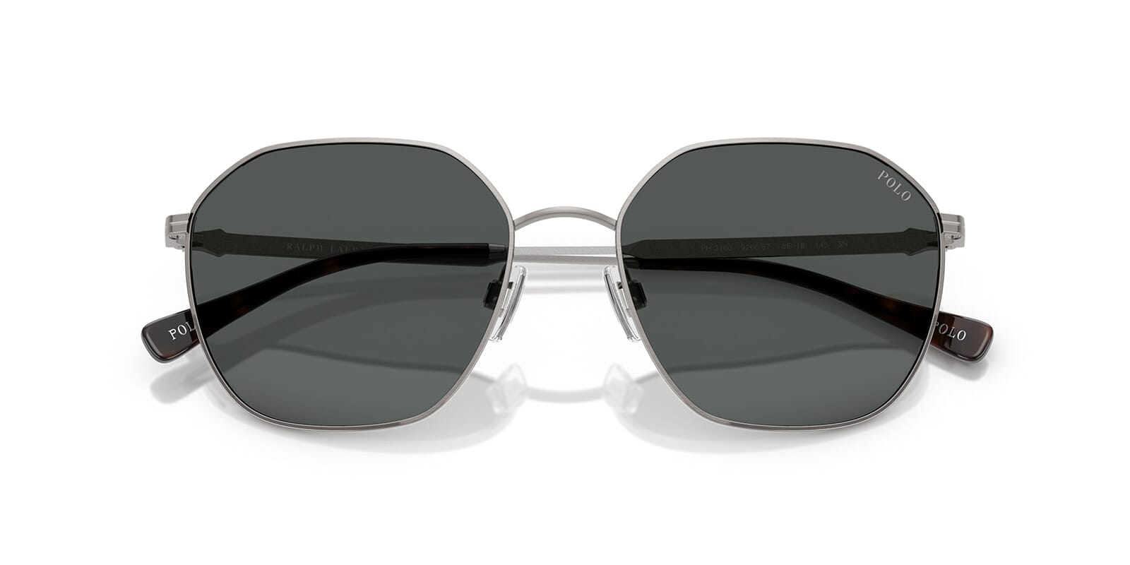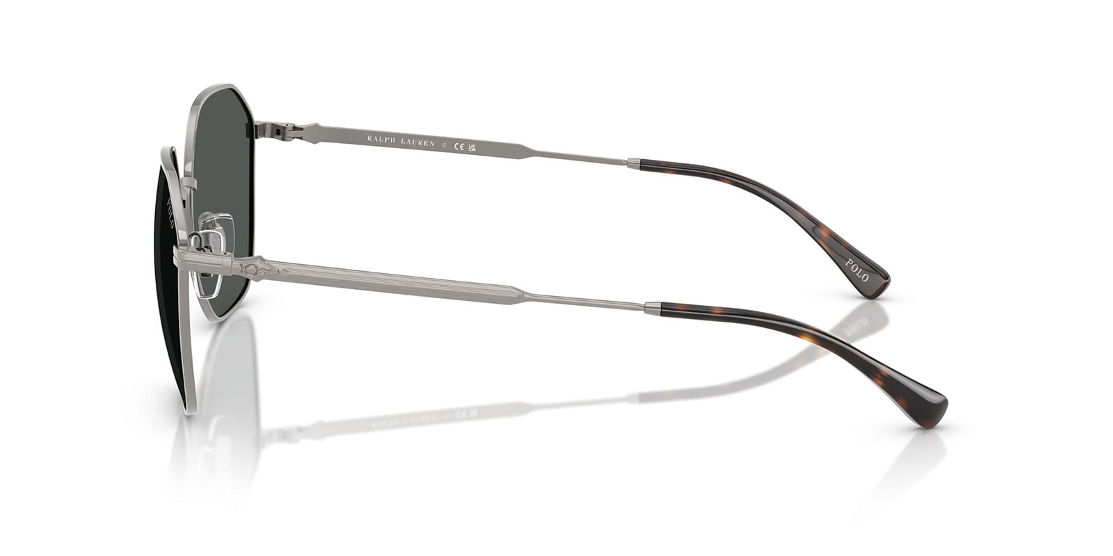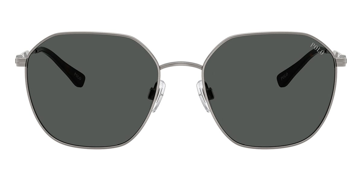 This square Polo sunglass comes in a brushed gunmetal frame with dark grey lenses.