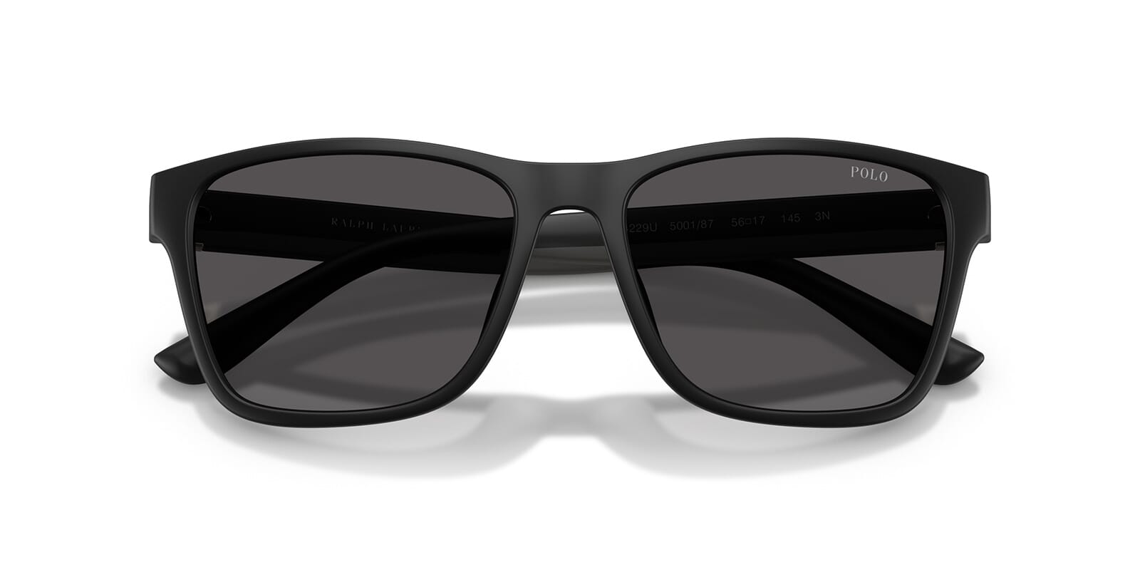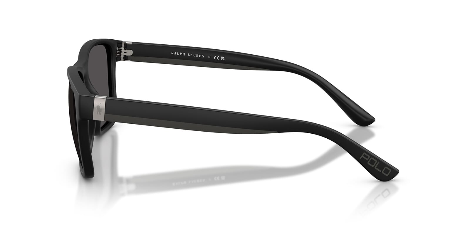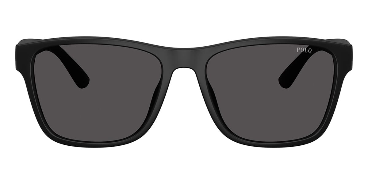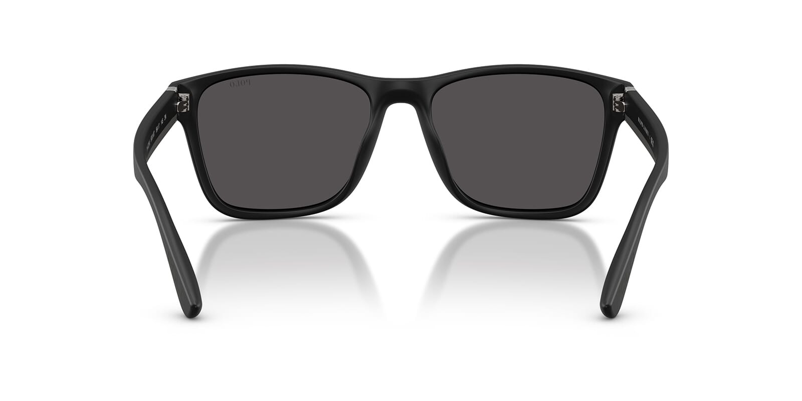 This square Polo sunglass comes in a matte black frame with dark grey lenses.