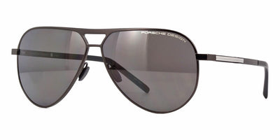 This aviator Porsche Design sunglass comes in a satin black frame with brown lenses.