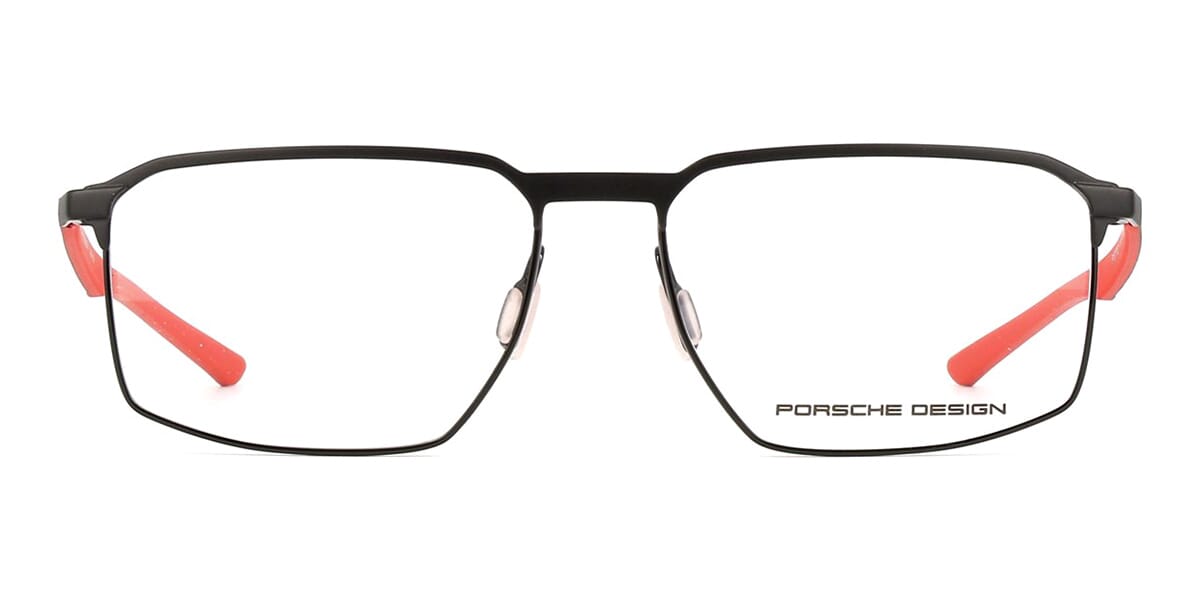 This square Porsche Design optical comes in a matte black and red frame.