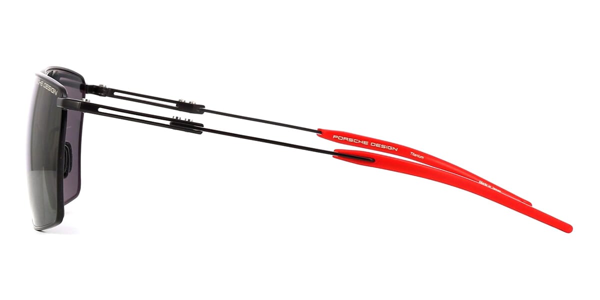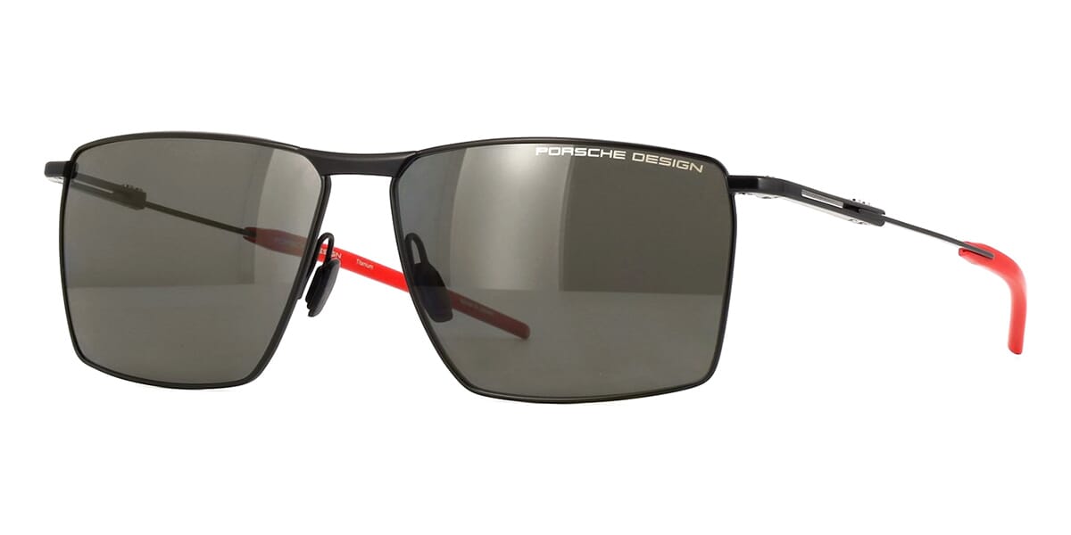 This square Porsche Design sunglass comes in a satin black frame with grey with light mirror polarised lenses.