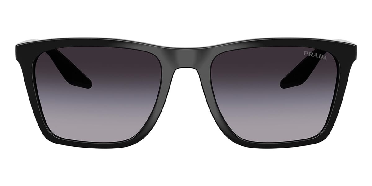 This square Prada Linea Rossa sunglass comes in a black frame with grey gradient lenses.