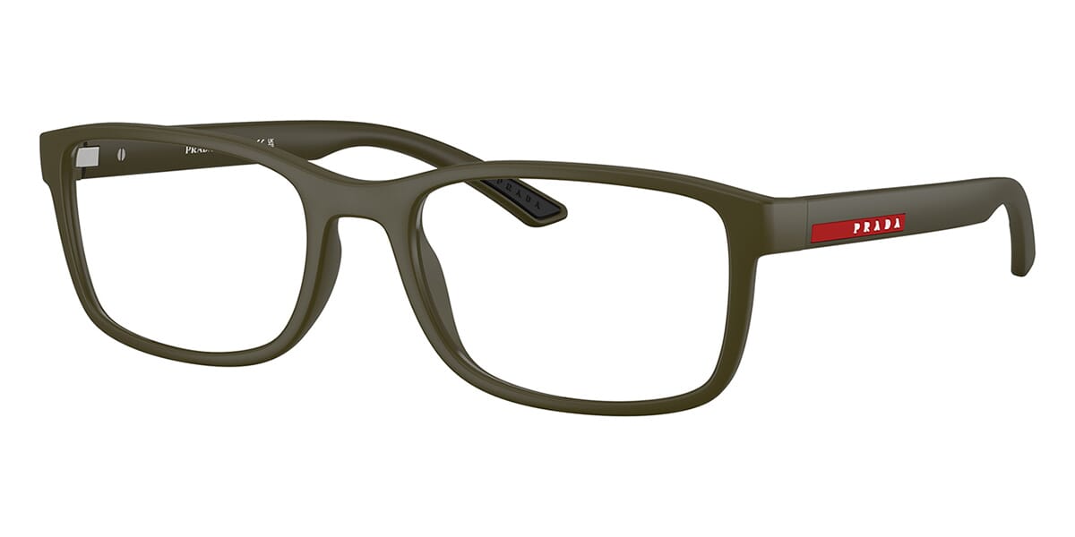 This rectangular Prada Linea Rossa optical comes in a matte green frame.