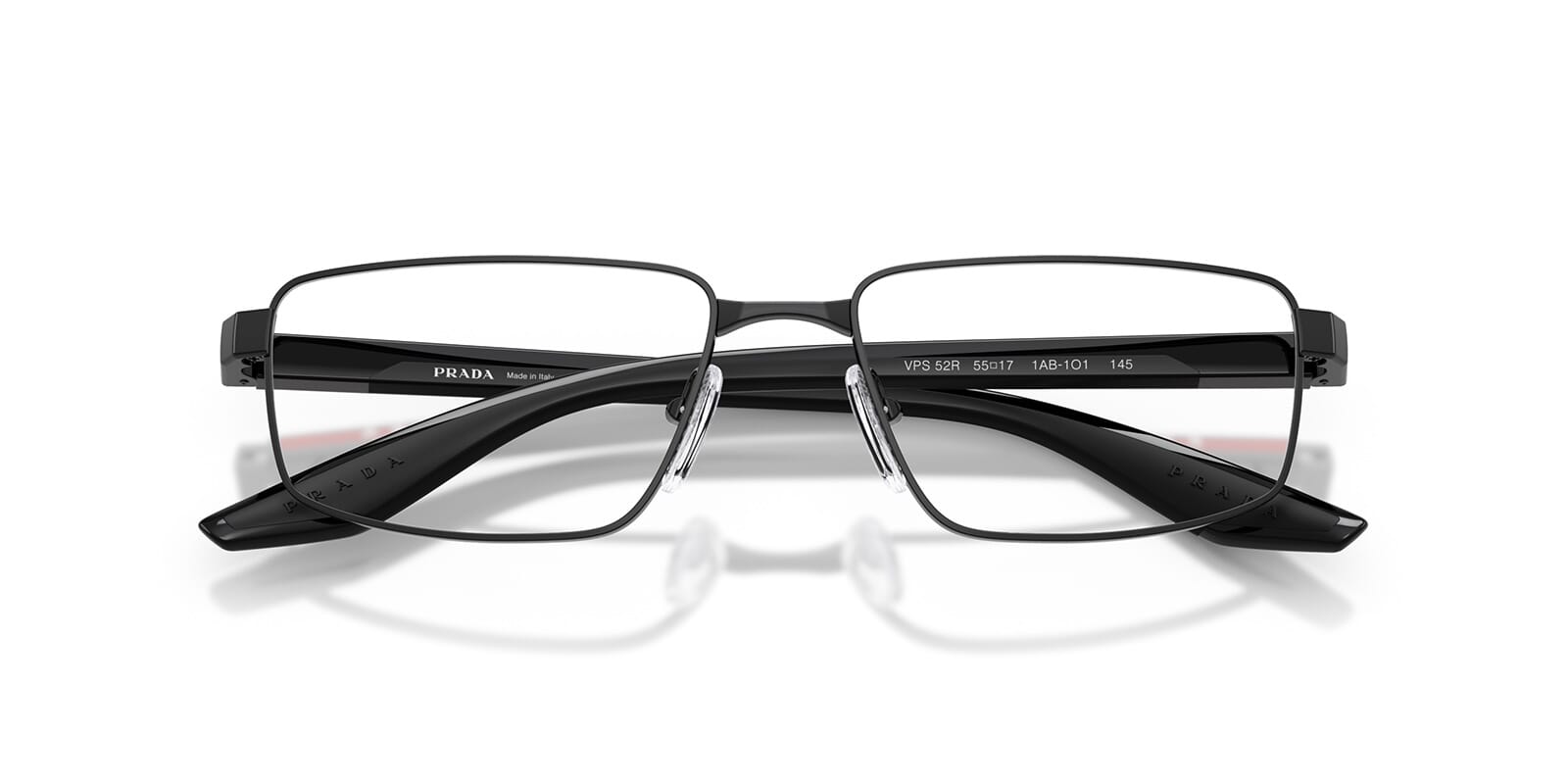 This rectangular Prada Linea Rossa optical comes in a black frame.