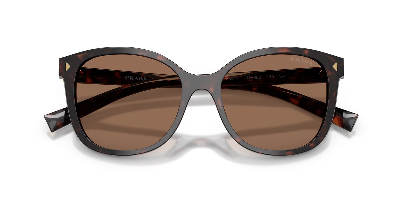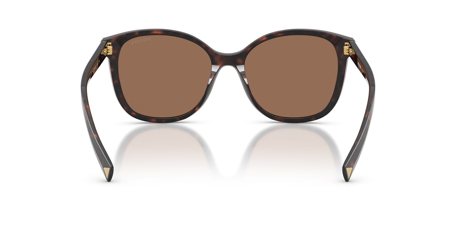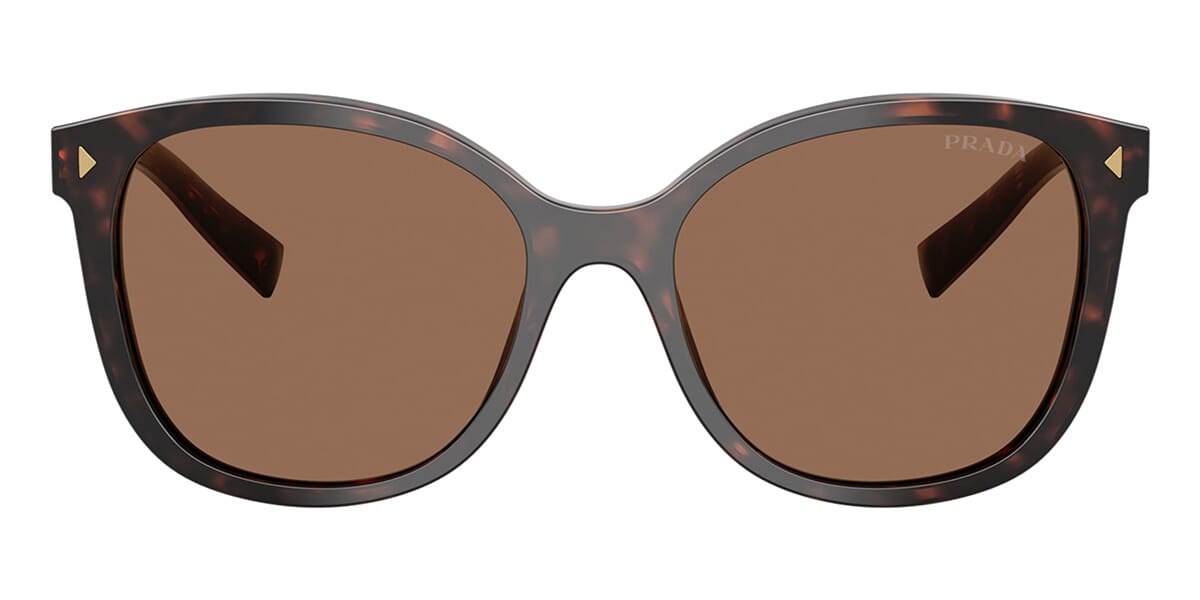 This square Prada sunglass comes in a tartaruga radica frame with dark brown lenses.