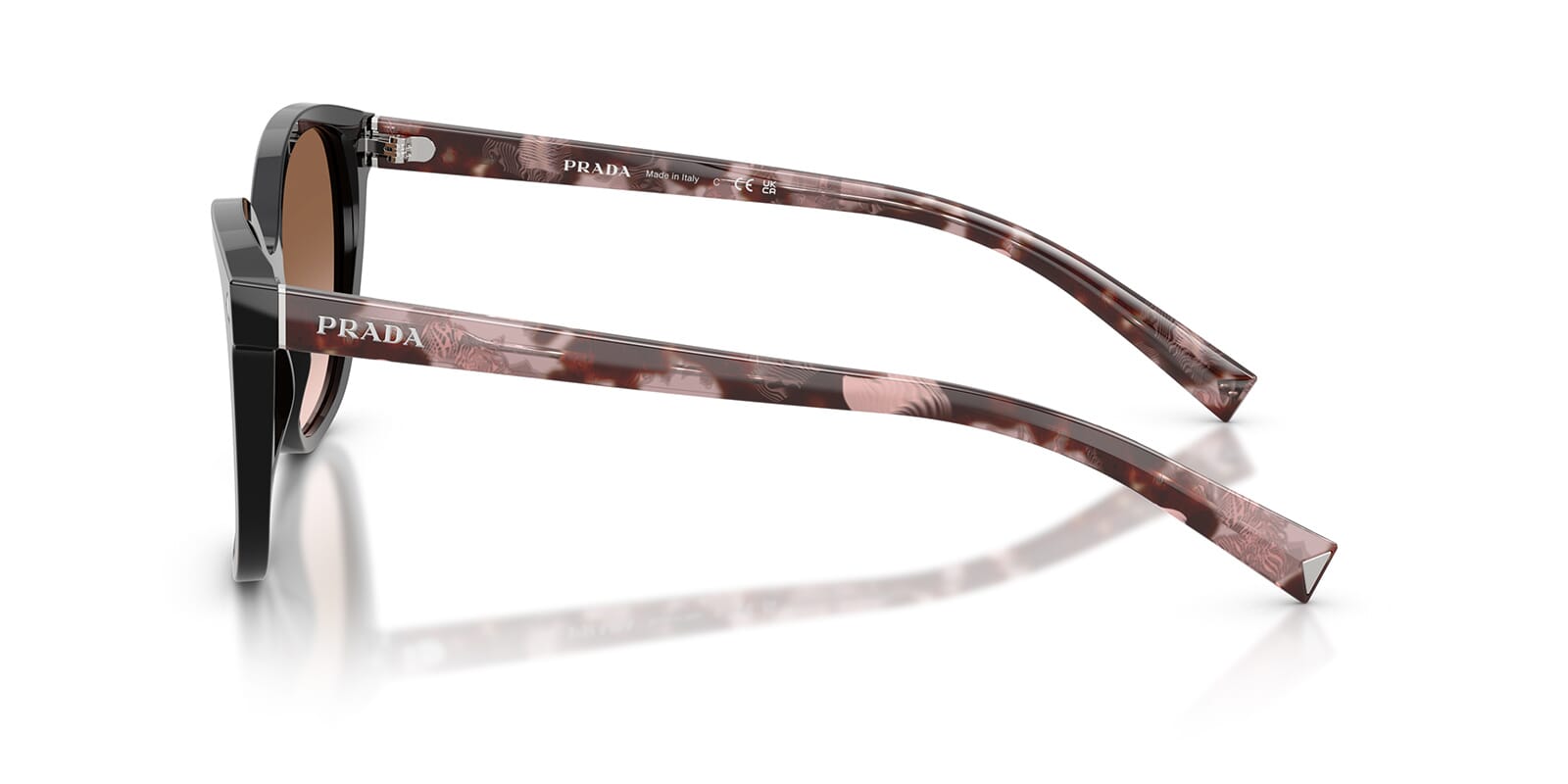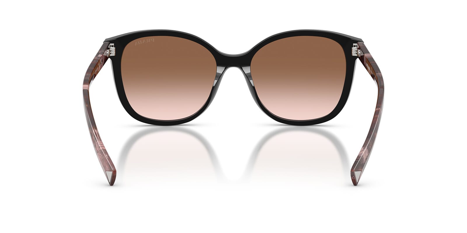 This square Prada sunglass comes in a black frame with brown gradient lenses.