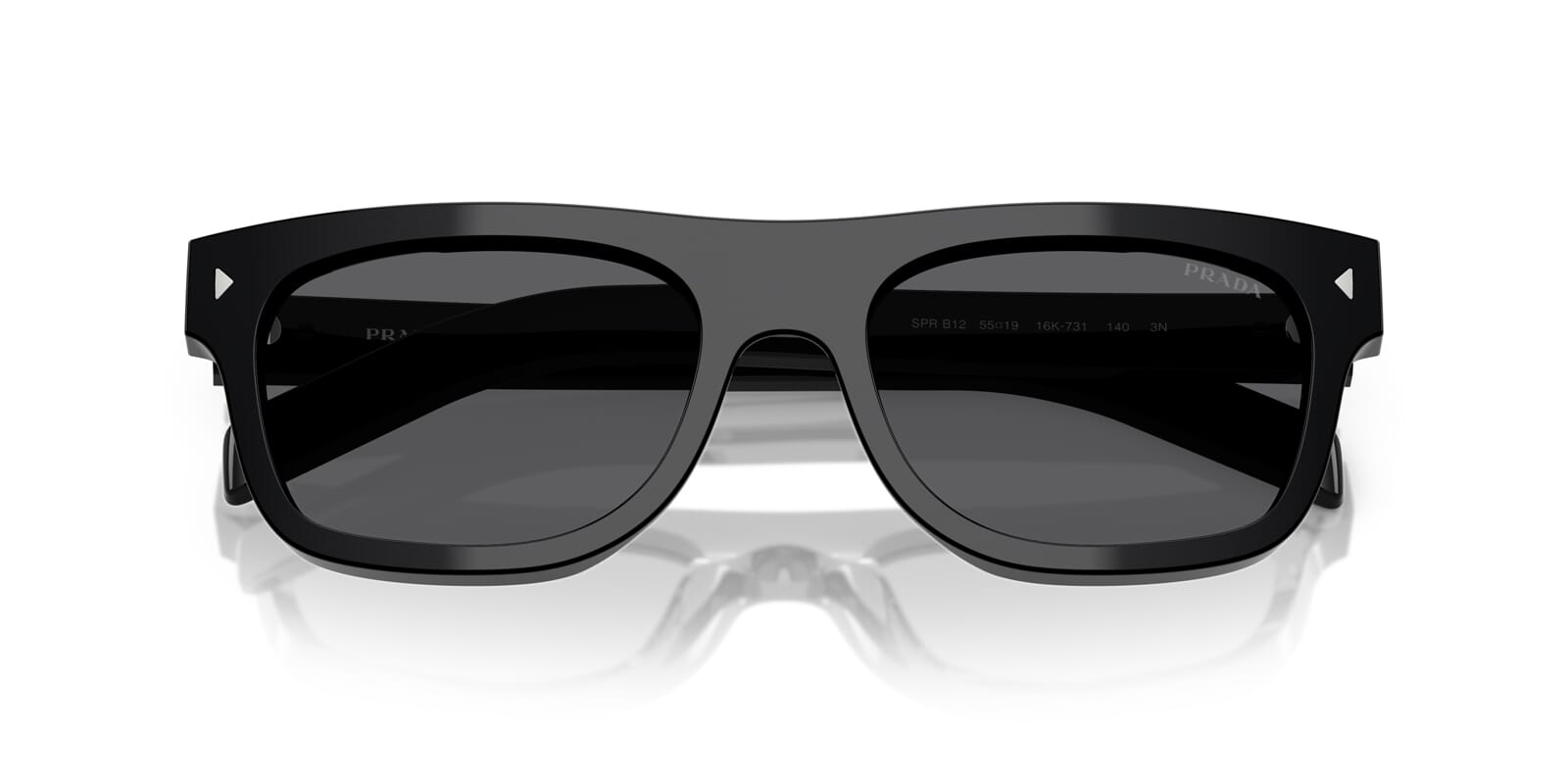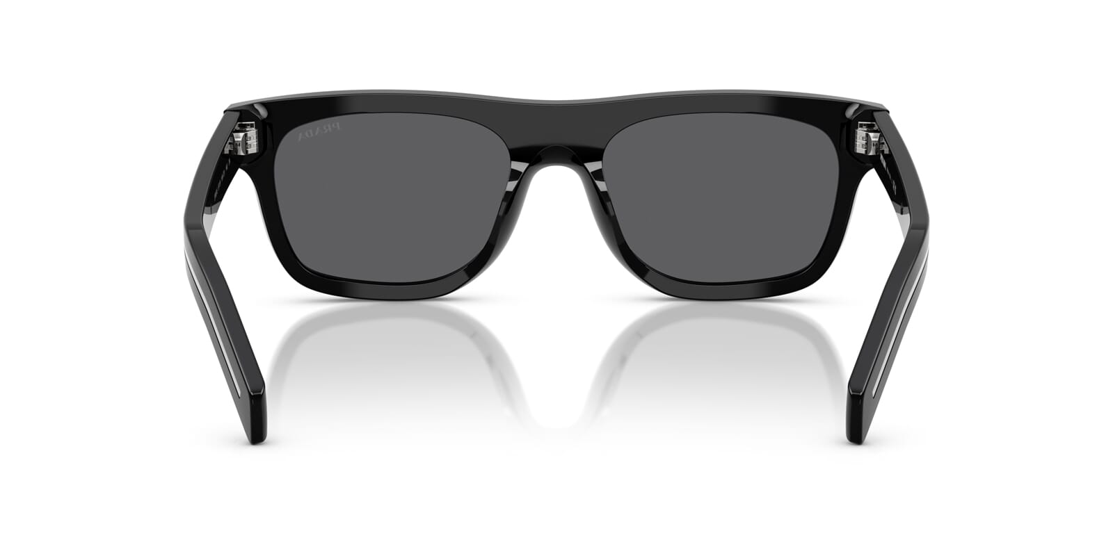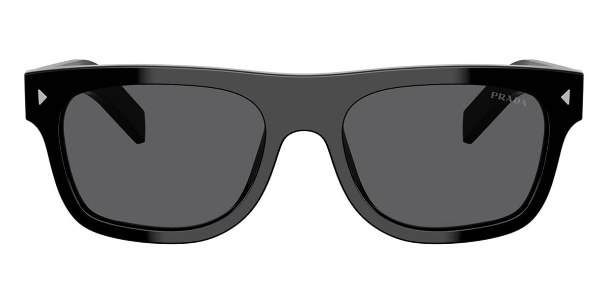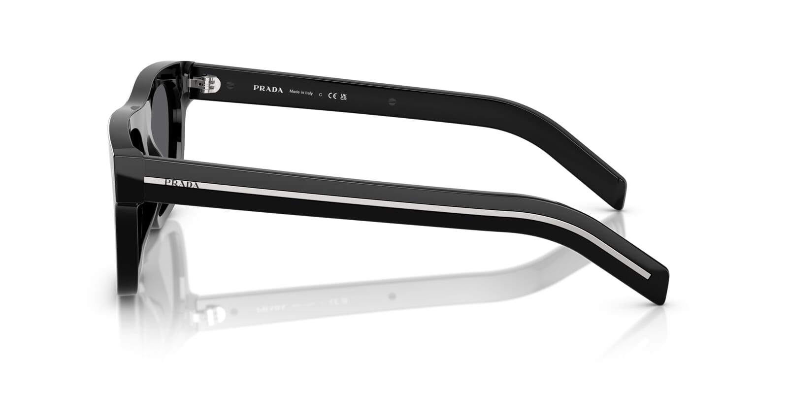 This square Prada sunglass comes in a black frame with dark grey lenses.
