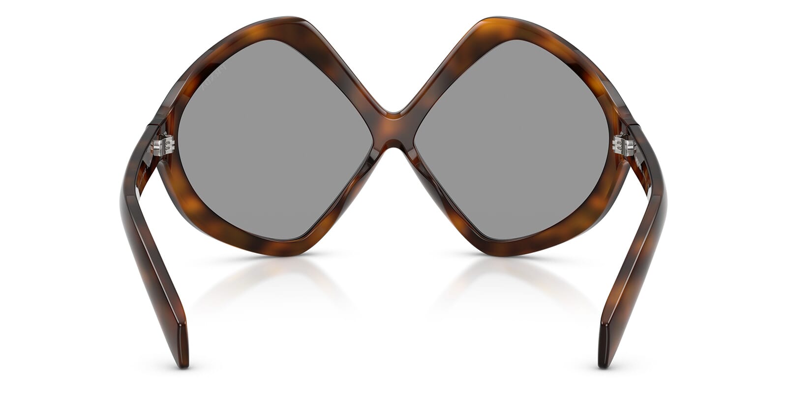 This cat eye Prada sunglass comes in a juniper tortoise frame with grey lenses.