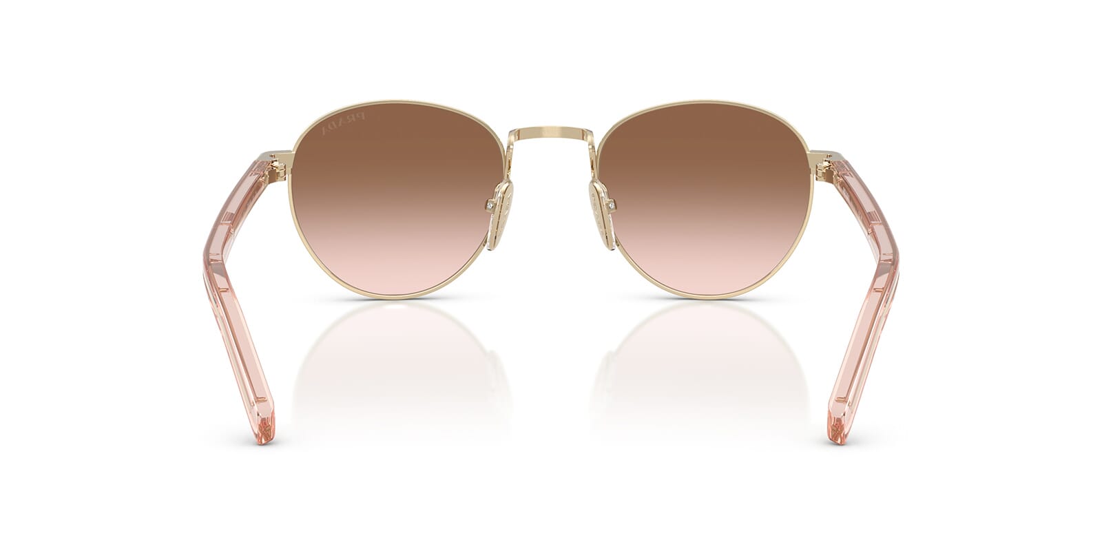This round Prada sunglass comes in a pale gold frame with brown gradient lenses.