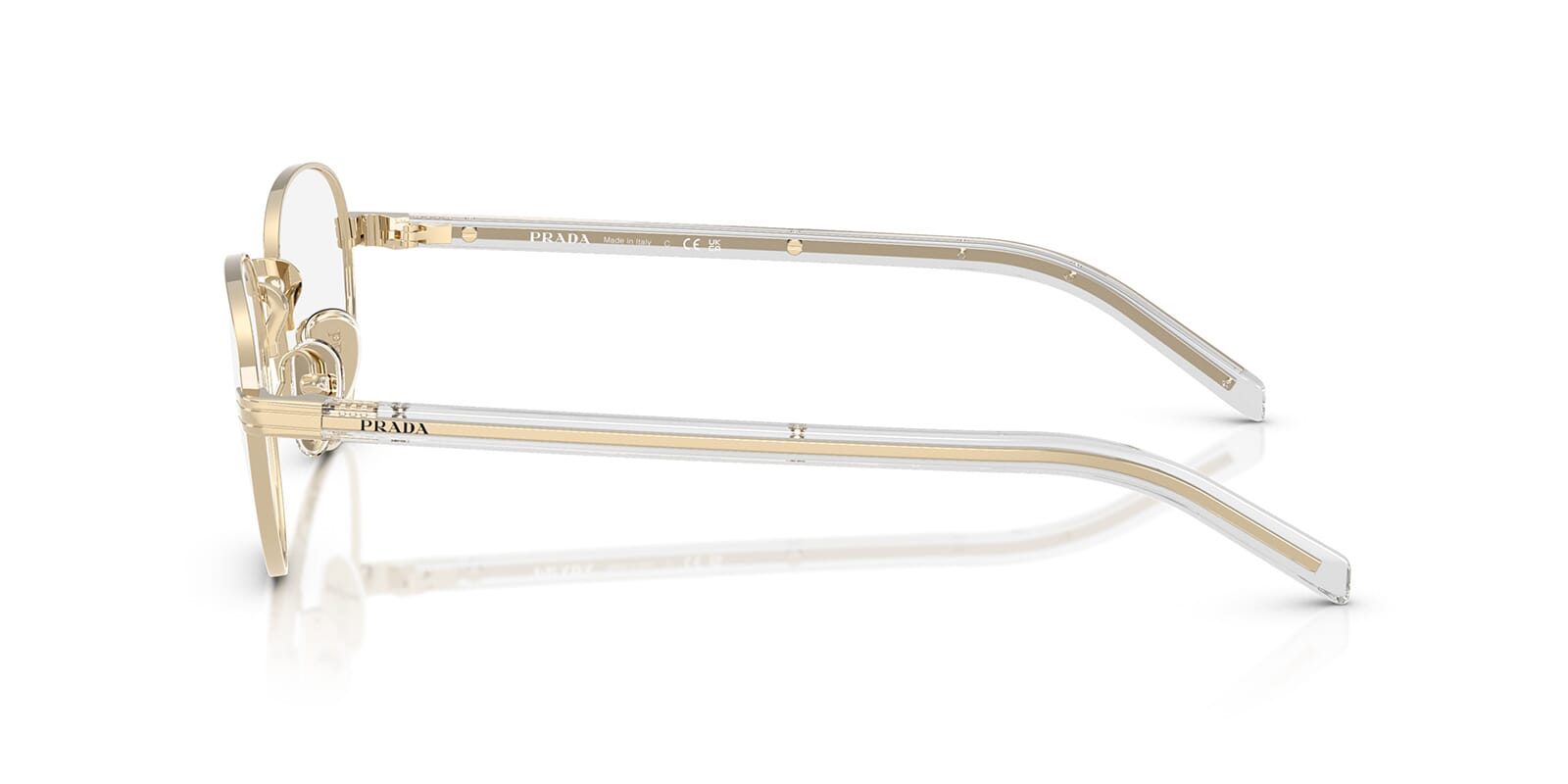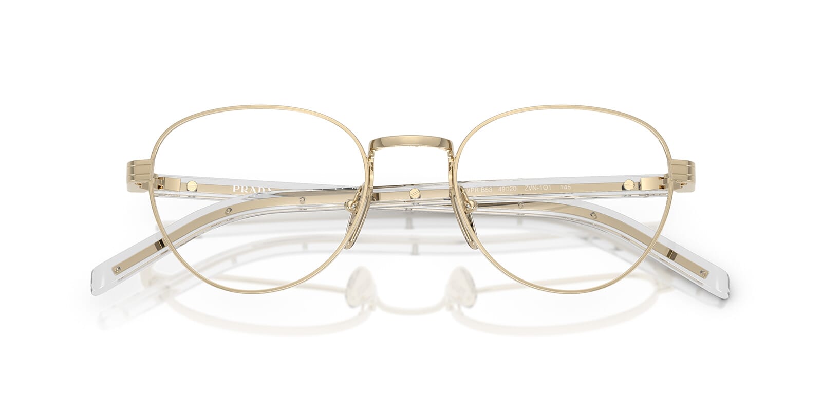 This round Prada optical comes in a pale gold frame.