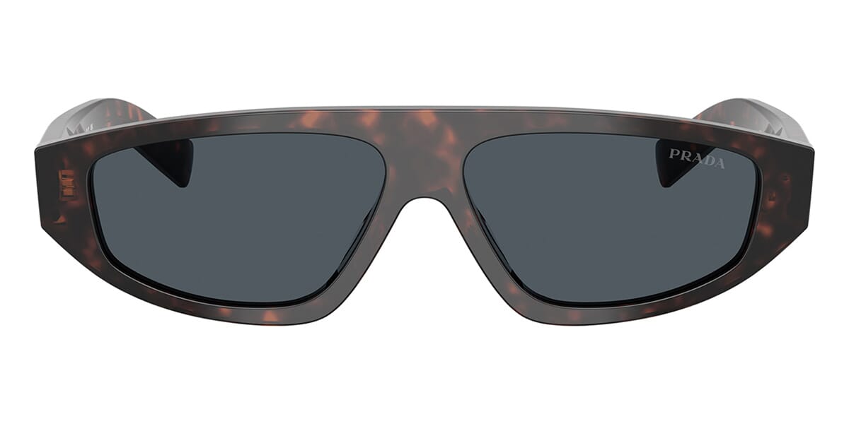 This rectangular Prada sunglass comes in a root havana frame with dark grey lenses.