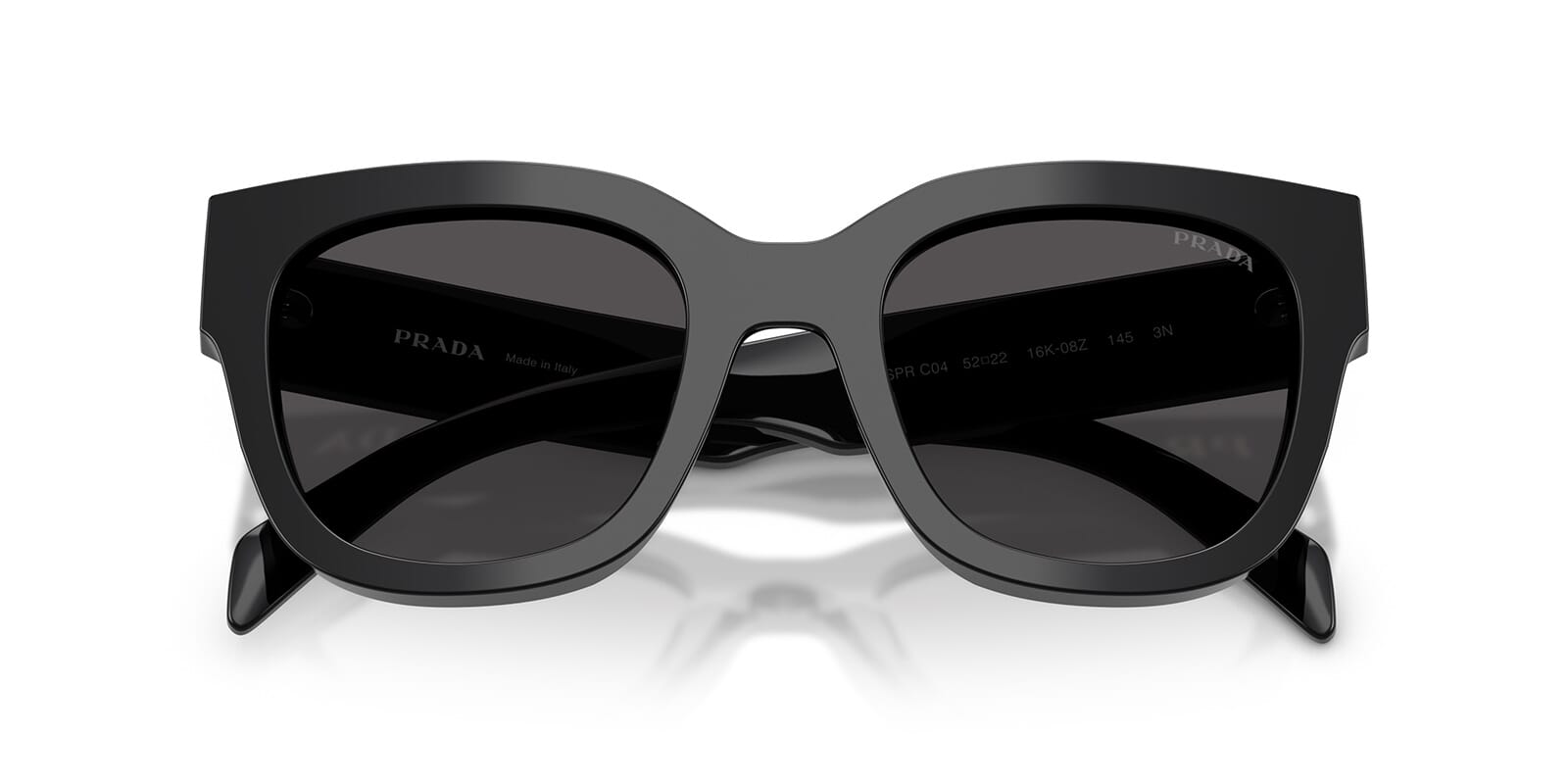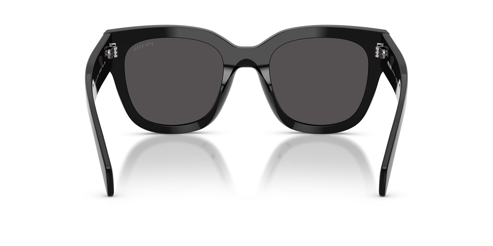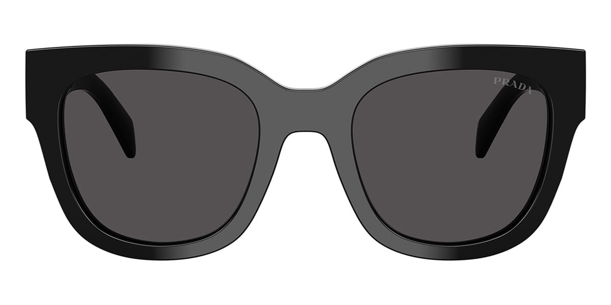 This square Prada sunglass comes in a black frame with dark grey lenses.