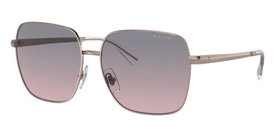 This square Ralph by Ralph Lauren sunglass comes in a shiny pale gold frame with brown gradient with light mirror lenses.