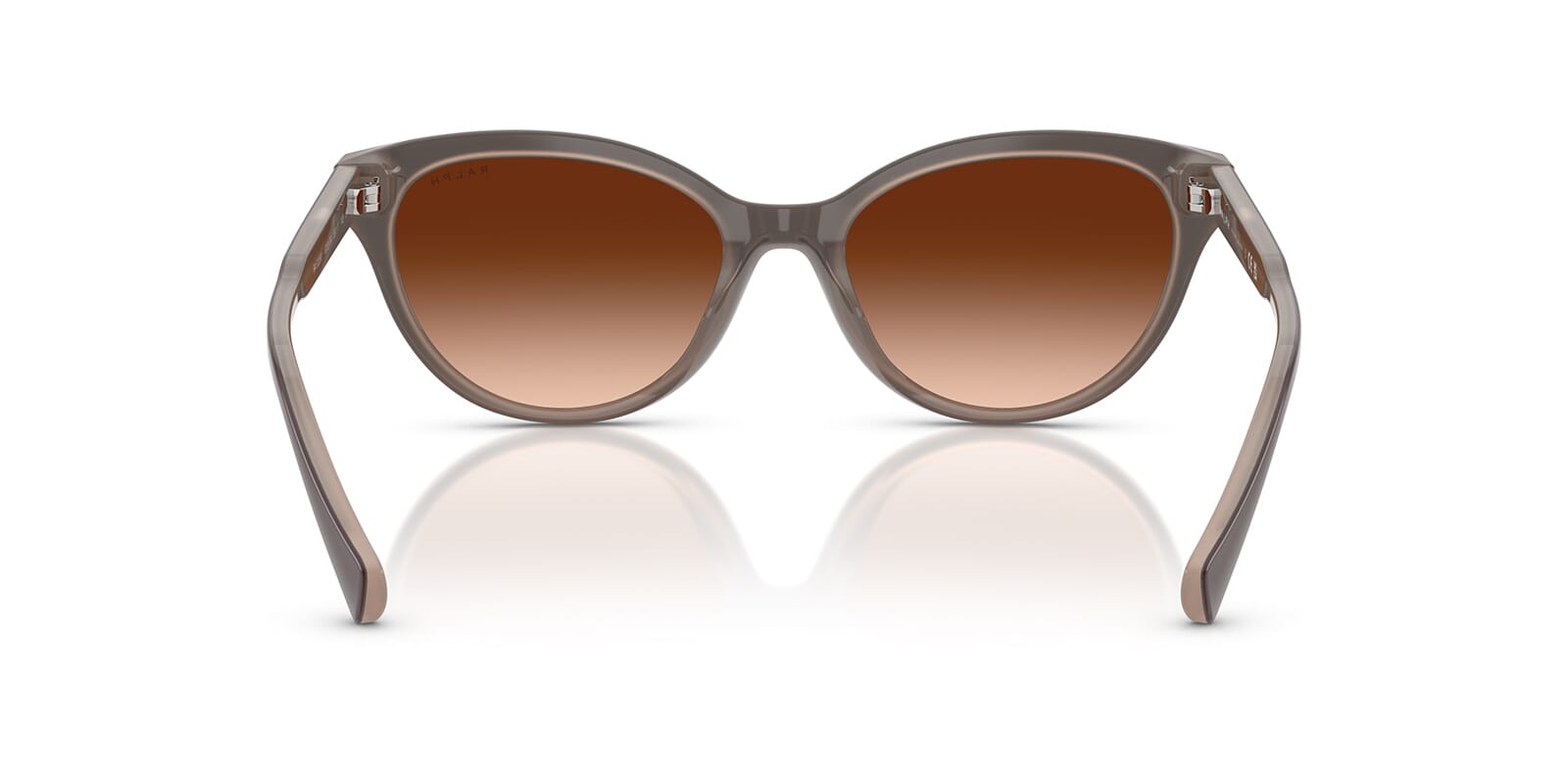 This cat eye Ralph by Ralph Lauren sunglass comes in a solid brown milky brown frame with brown gradient lenses.