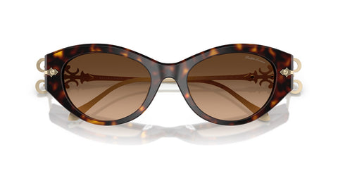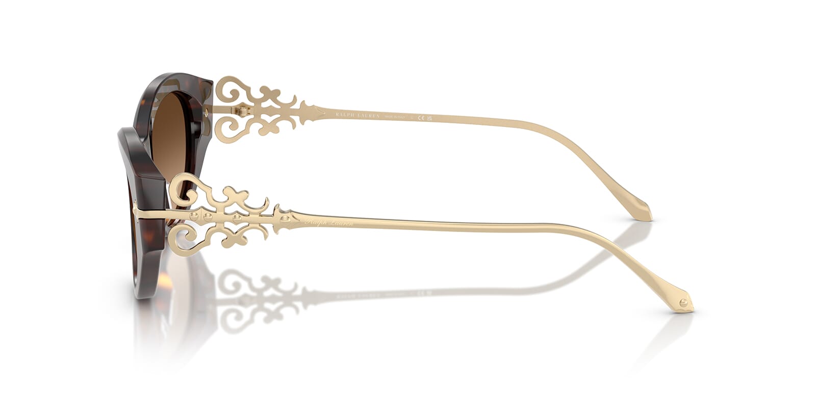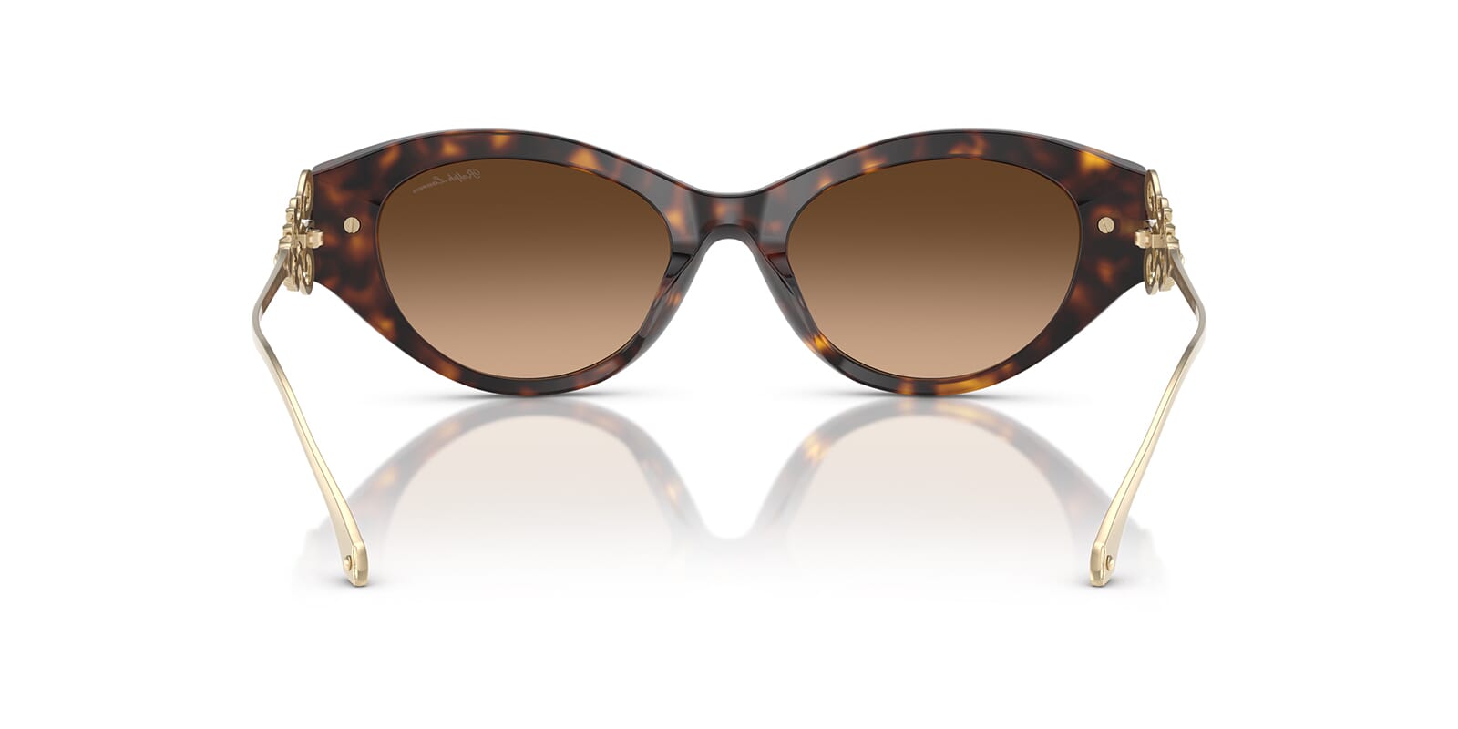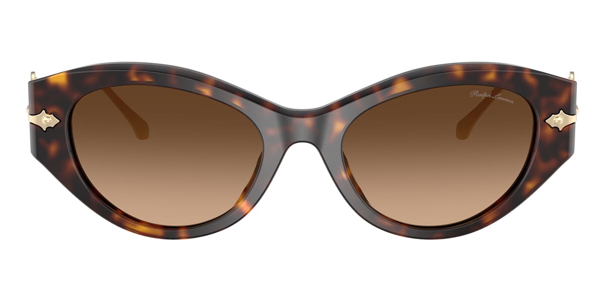 This cat eye Ralph Lauren sunglass comes in a dark havana frame with brown gradient lenses.