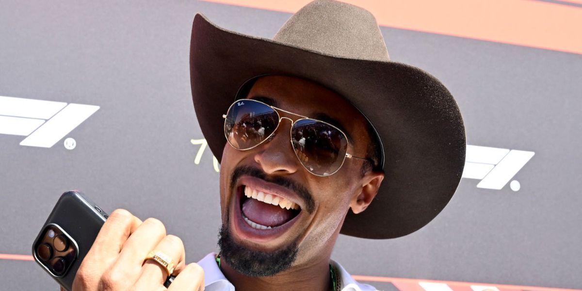 German decathlete Leo Neugebauer was seen wearing Ray-Ban Aviator 3025 001/51 Gold/Light Brown Gradient sunglasses at the F1 Grand Prix of Austin 2025. Shop online now on Pretavoir