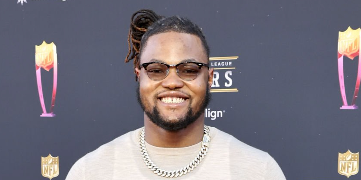 American football player Rashan Gary of the Green Bay Packers was seen wearing dark tortoiseshell and silver Ray-Ban Clubmaster Optical RB 5154 2012 glasses at the 11th Annual NFL Honors, February 2022.