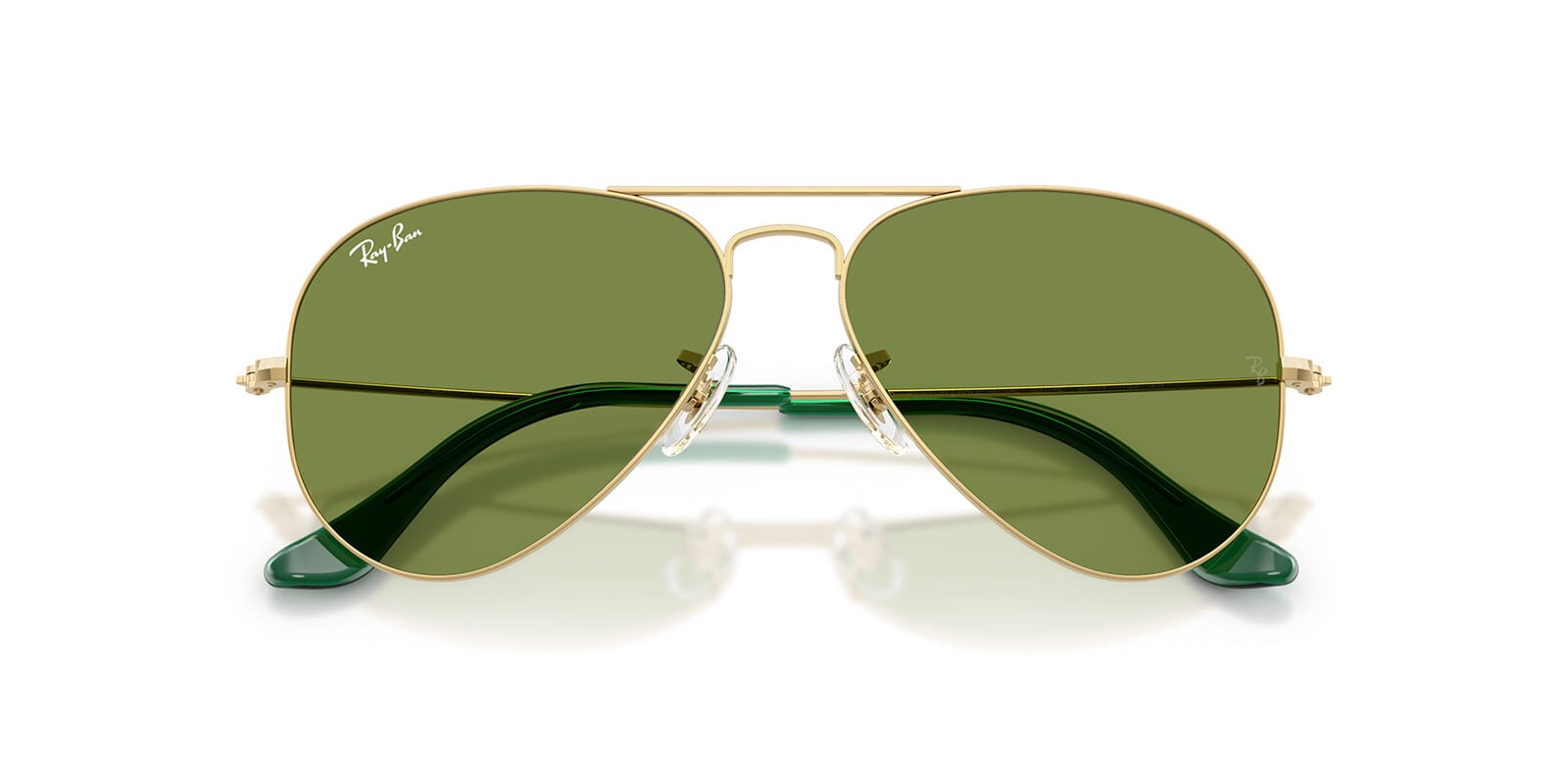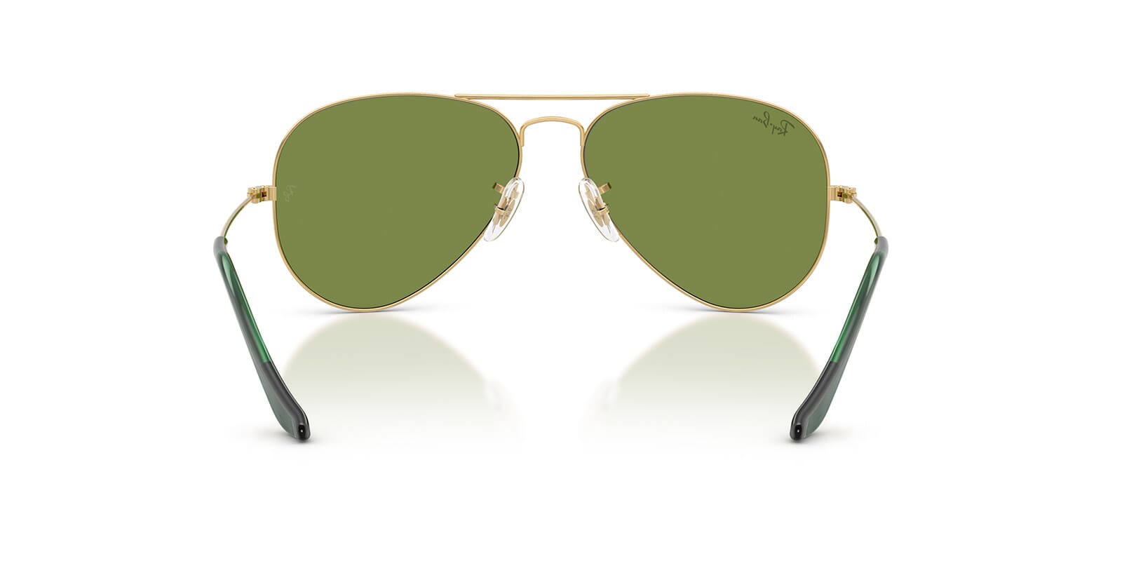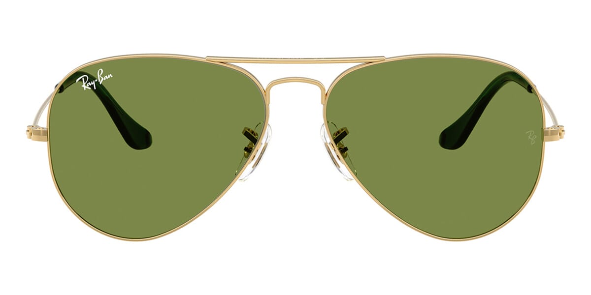 This aviator Ray-Ban sunglass comes in a arista gold frame with green lenses.