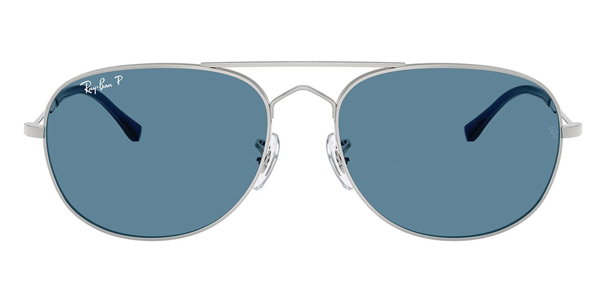 This round Ray-Ban sunglass comes in a silver frame with blue polarised lenses.
