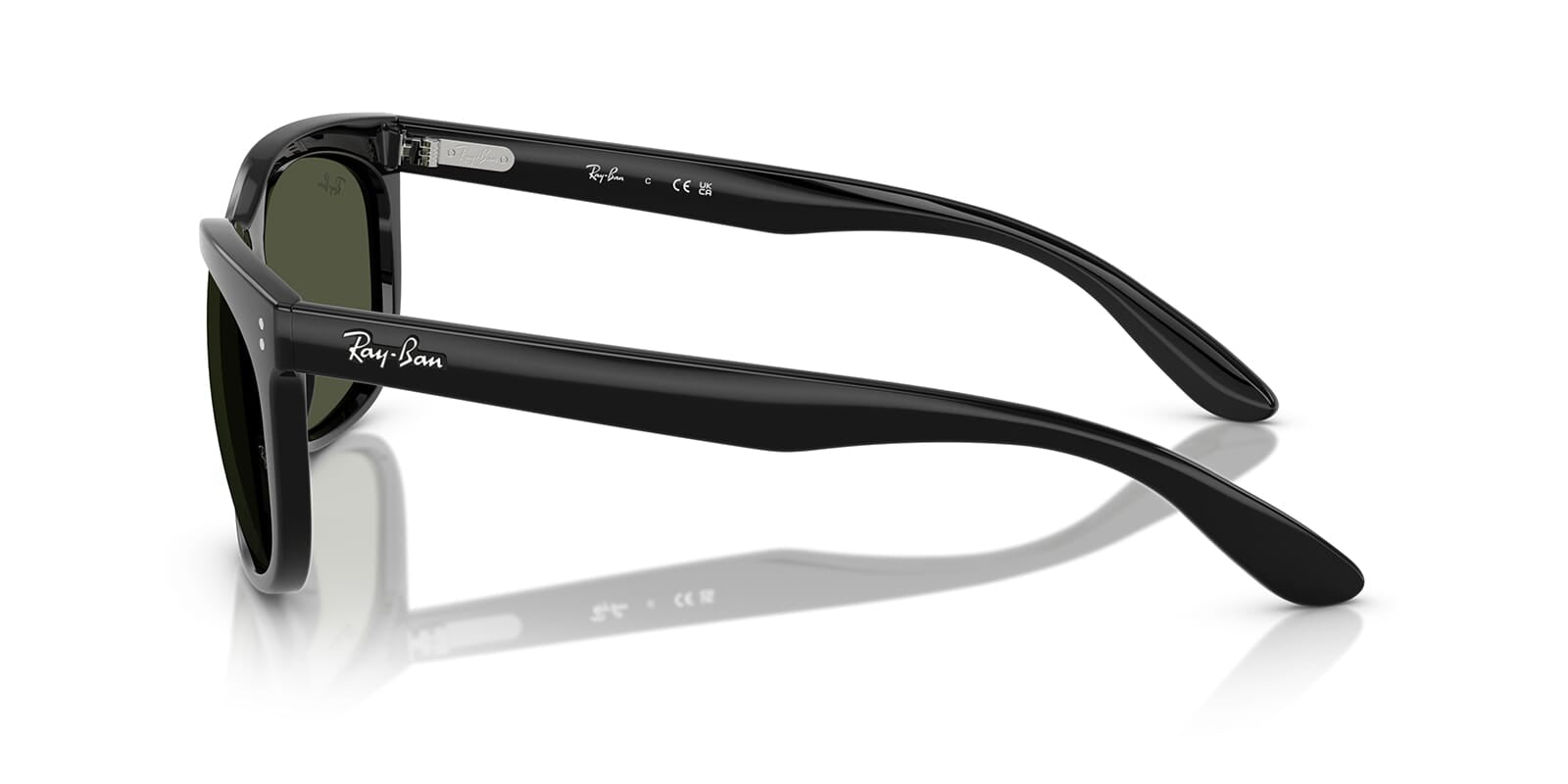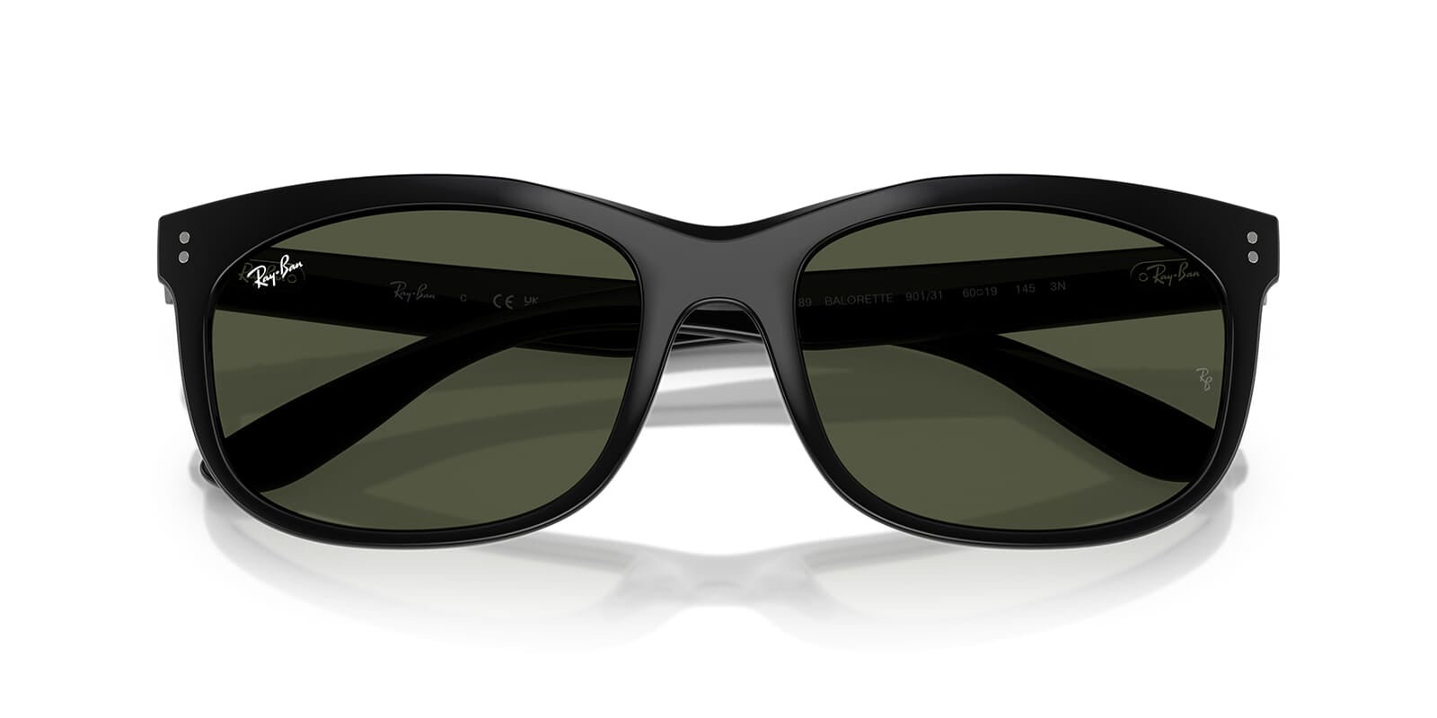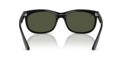 This rectangular Ray-Ban sunglass comes in a black frame with g-15 green lenses.