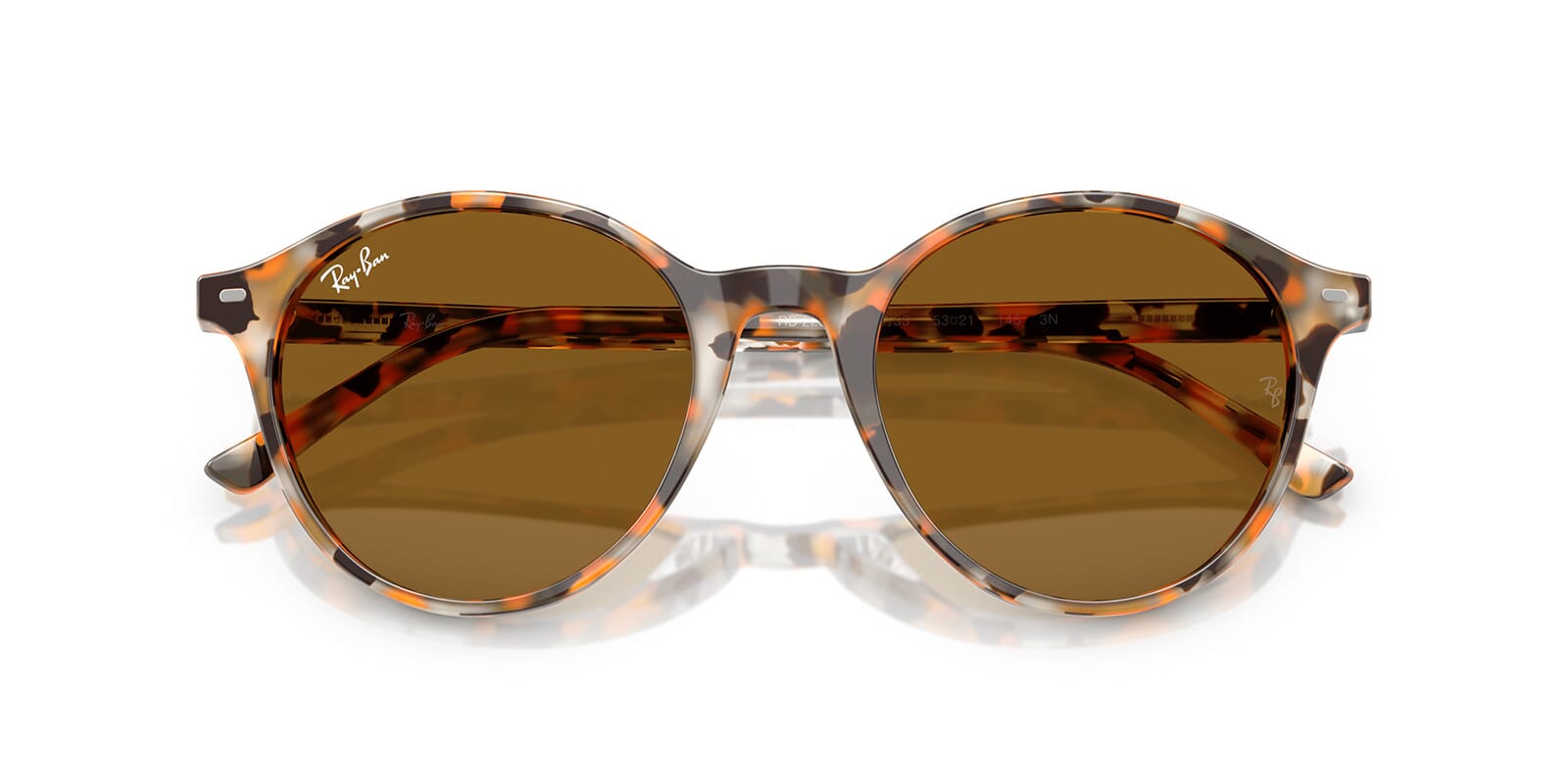 This round Ray-Ban sunglass comes in a havana grey and brown frame with brown lenses.