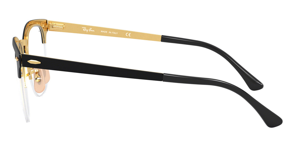 This square Ray-Ban optical comes in a black on gold frame.