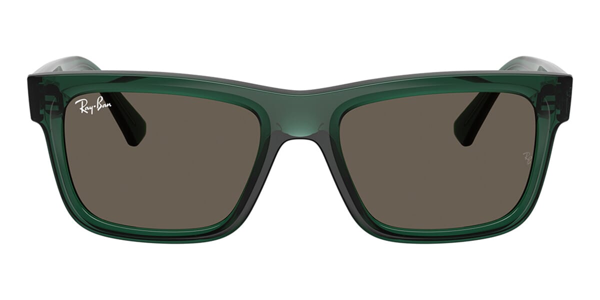 This rectangular Ray-Ban sunglass comes in a green crystal frame with brown lenses.