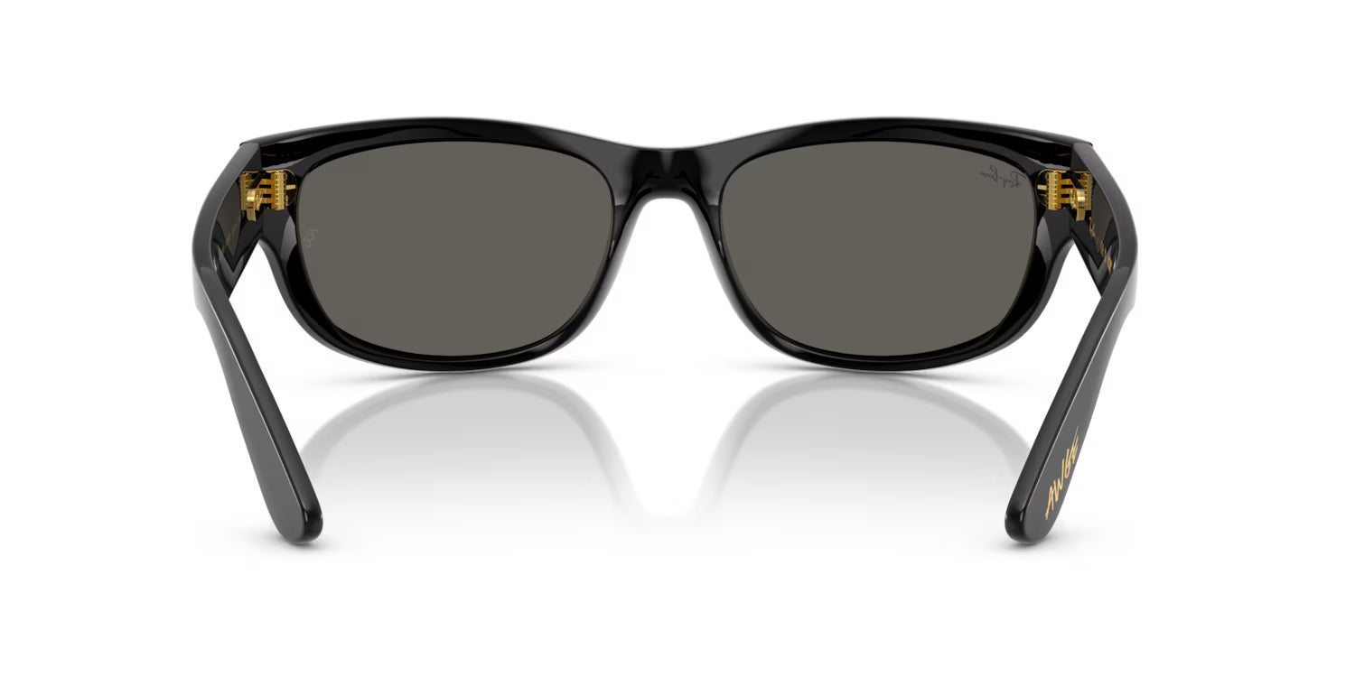 This wraparound Ray-Ban sunglass comes in a black frame with ultra black lenses.