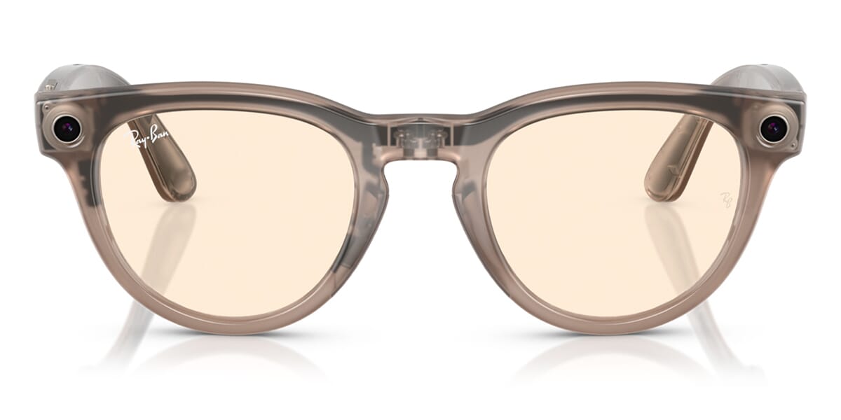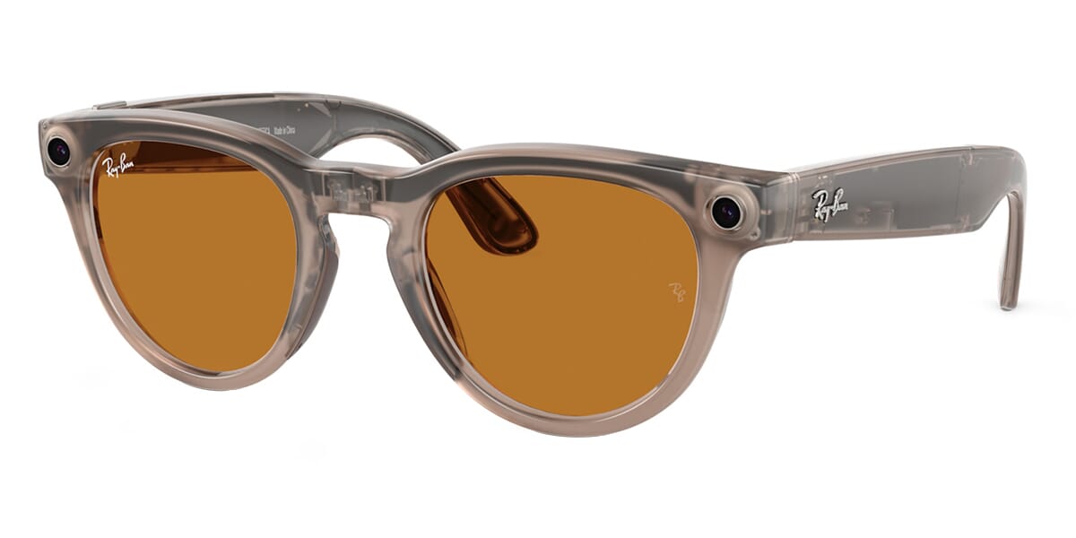 This round Ray-Ban sunglass comes in a warm stone frame with clear to saffron yellow photochromic transitions lenses.