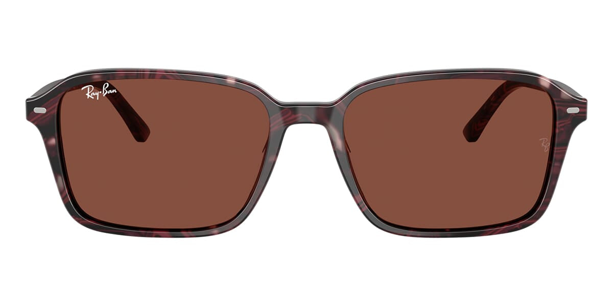 This square Ray-Ban sunglass comes in a transparent fantasy violet & red frame with red lenses.