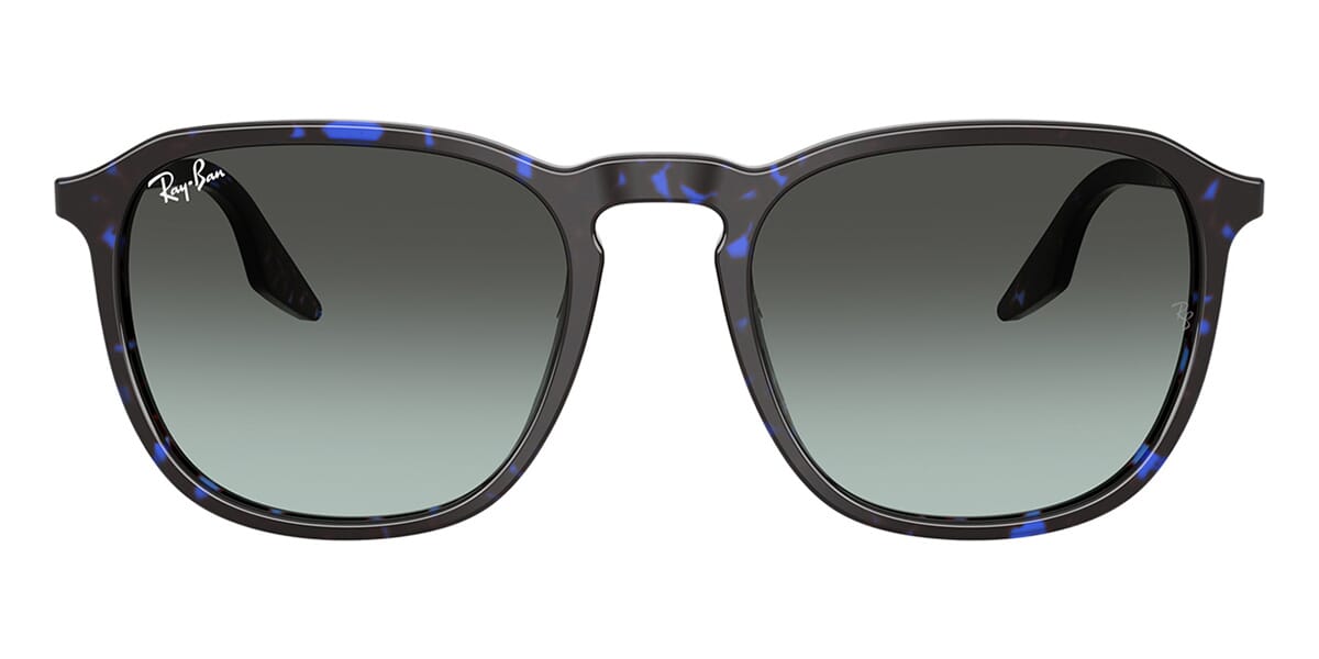 This square Ray-Ban sunglass comes in a havana blue tortoiseshell frame with vintage black to blue gradient lenses.
