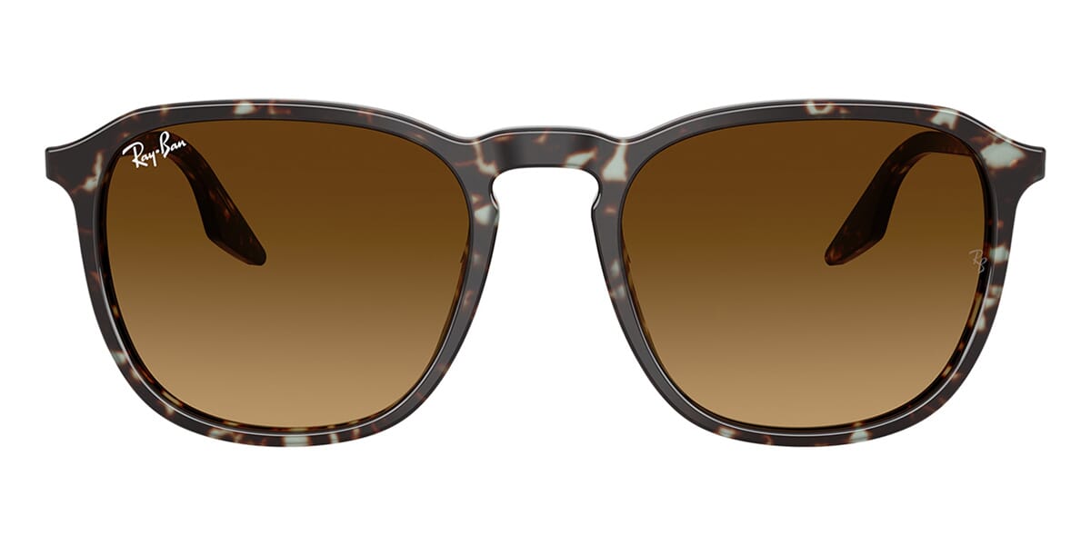 This square Ray-Ban sunglass comes in a havana yellow tortoiseshell frame with brown gradient lenses.
