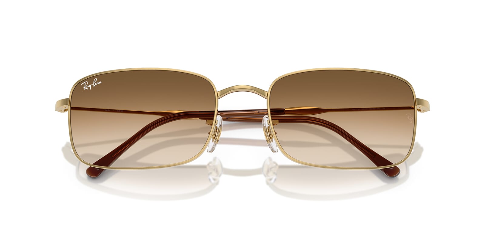 This rectangular Ray-Ban sunglass comes in a arista frame with brown to clear gradient lenses.