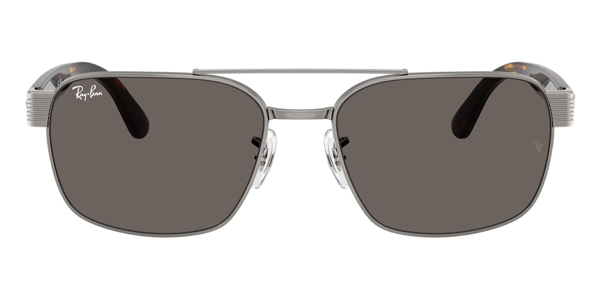 This square Ray-Ban sunglass comes in a gunmetal frame with dark grey lenses.