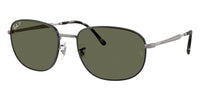 This square Ray-Ban sunglass comes in a arista gold frame with green lenses.