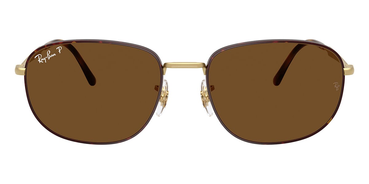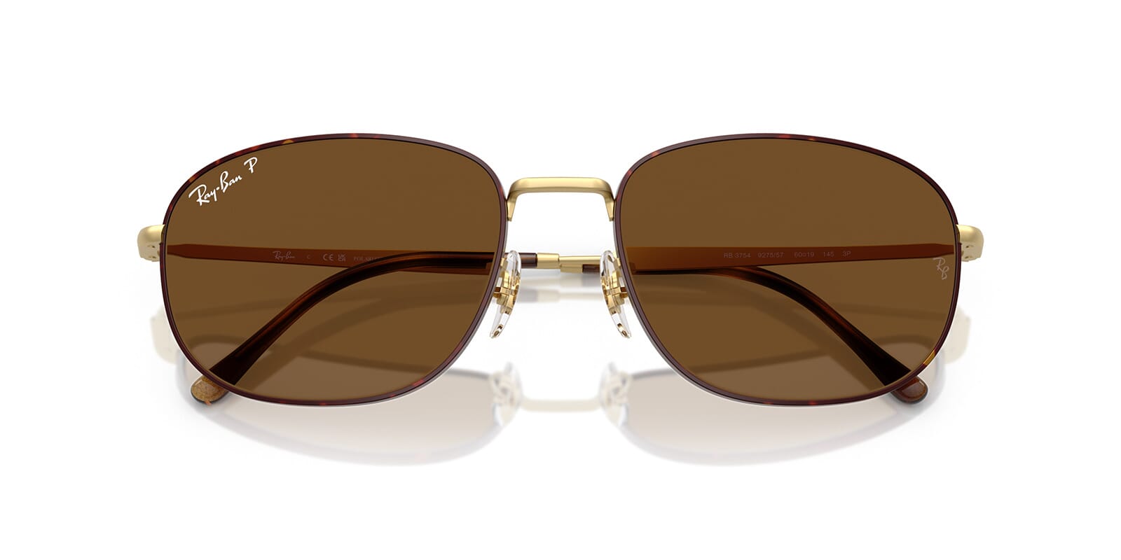 This square Ray-Ban sunglass comes in a matte havana on matte arista gold frame with brown polarised lenses.