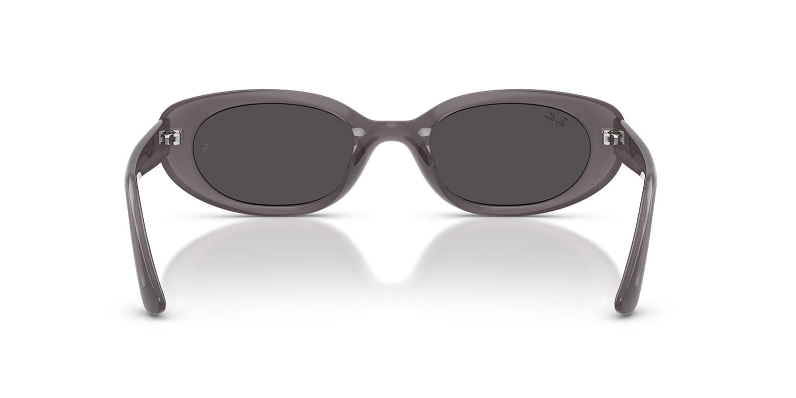 This round Ray-Ban sunglass comes in a dark grey crystal frame with dark grey lenses.