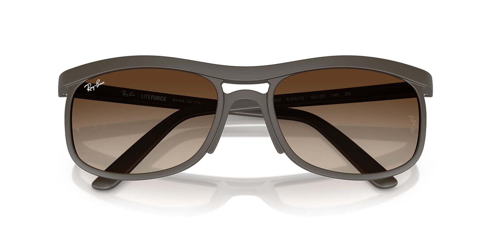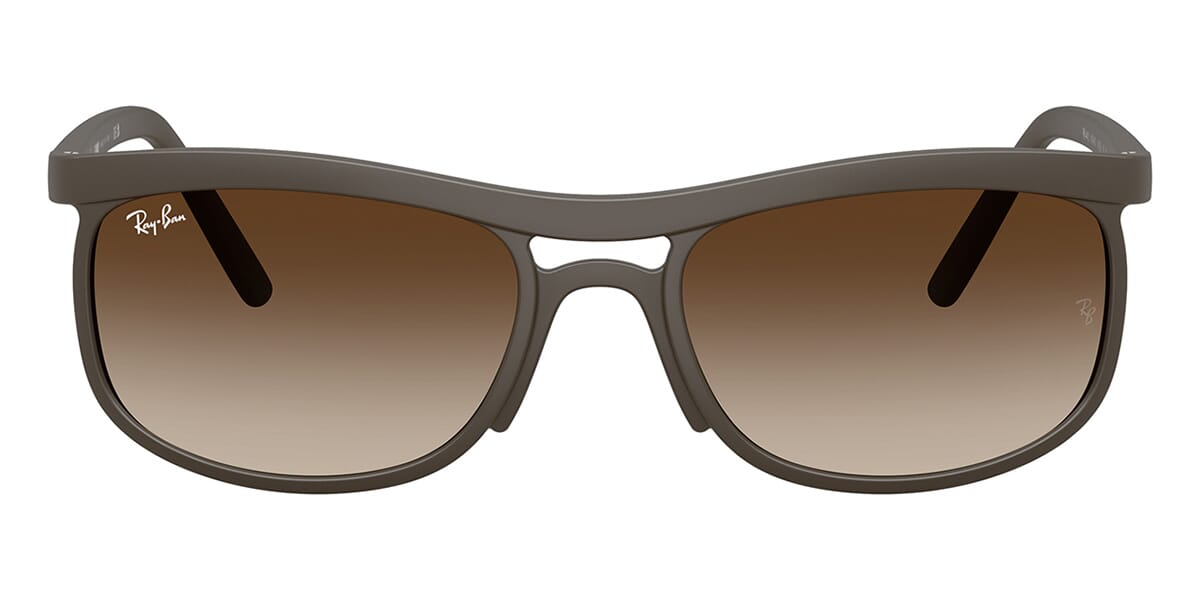 This square Ray-Ban sunglass comes in a sand brown frame with brown gradient lenses.