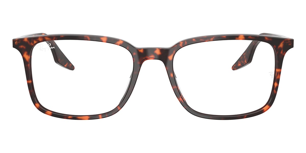 This rectangular Ray-Ban optical comes in a havana red tortoiseshell frame.